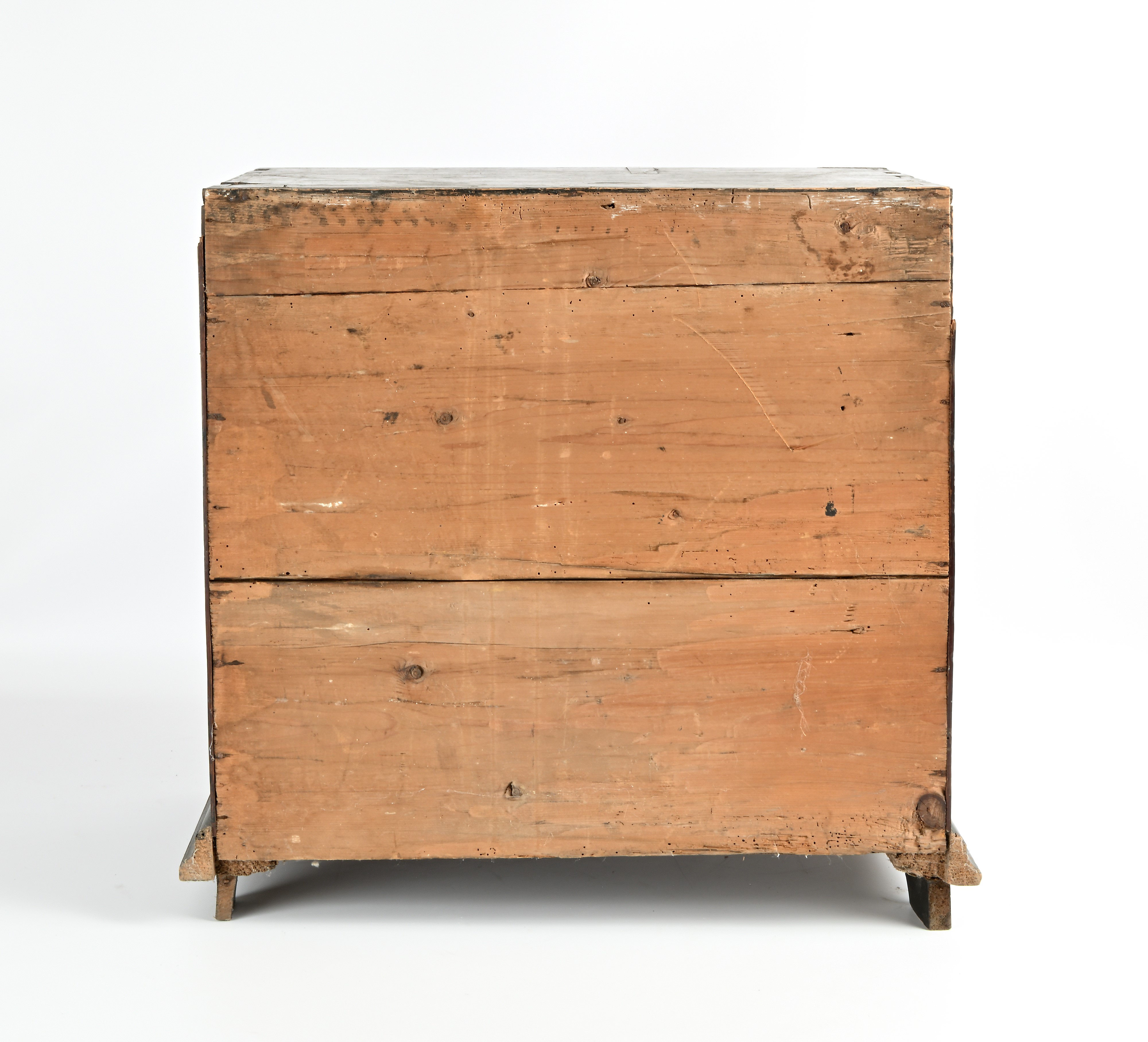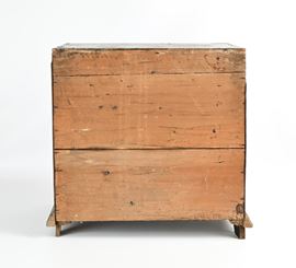 facciata di impostazione architettonica con sottili filettature intarsiate, nicchia centrale circondata da dodici tiretti con cornici intagliate a trottola; piedi anteriori a sfera schiacciata