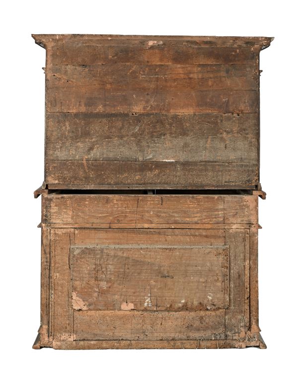 Stipo in noce con placchette circolari in pietra dura, XVII secolo