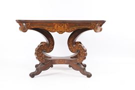 Tavolino Carlo X in legno intarsiato, XIX secolo