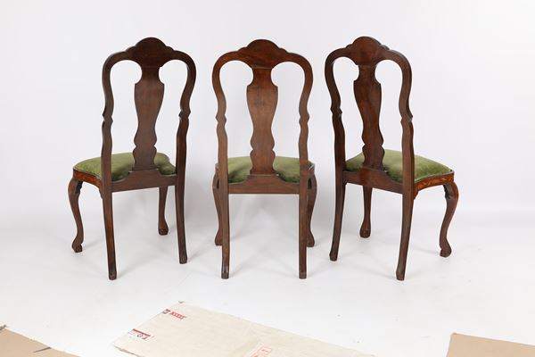 Tre sedie in legno intarsiato, Olanda, XVIII secolo