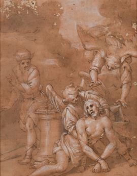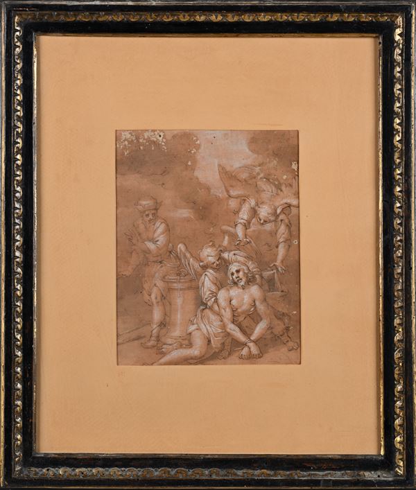China e inchiostro bruno acquerellato con rialzi di biacca su carta