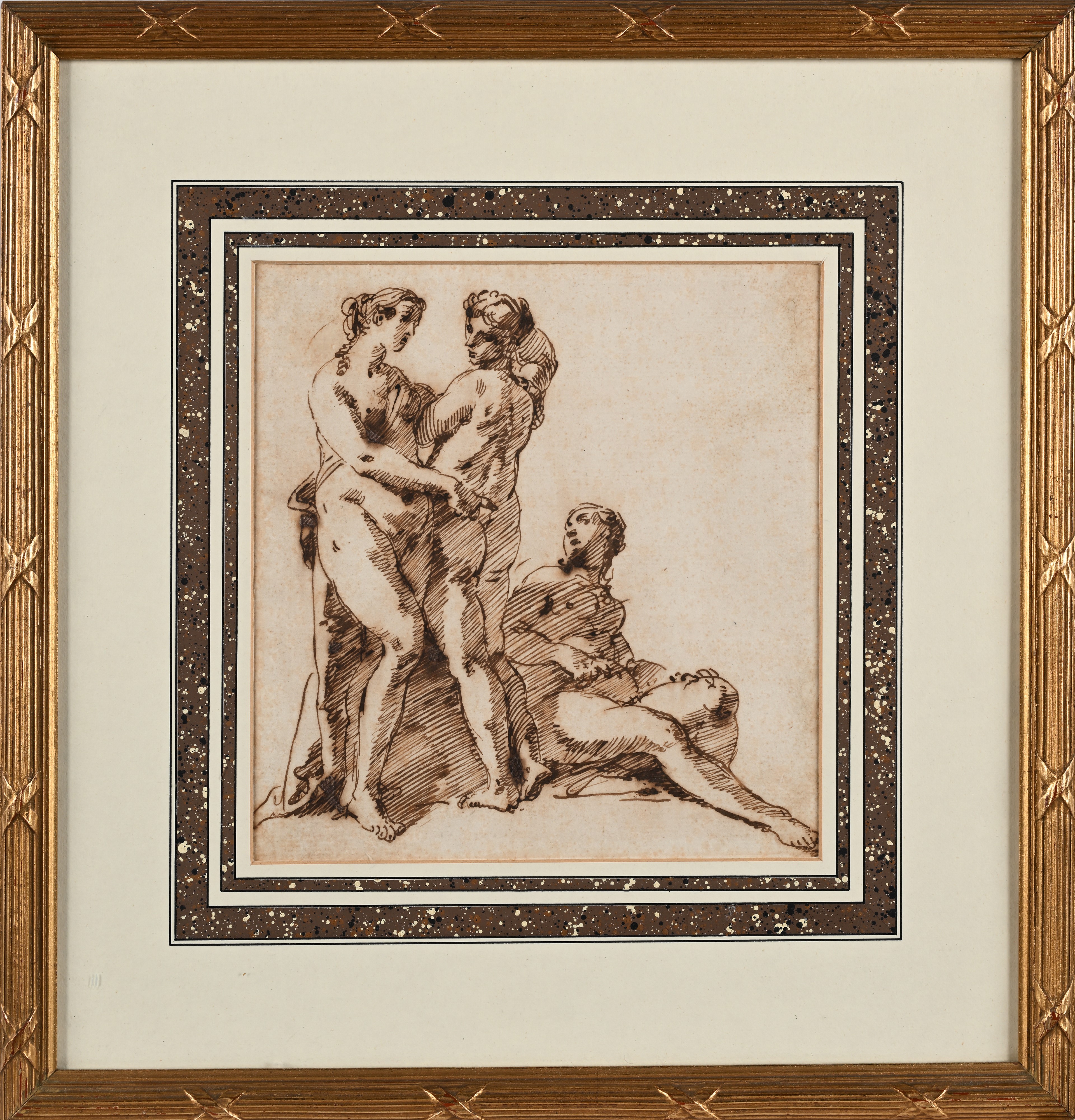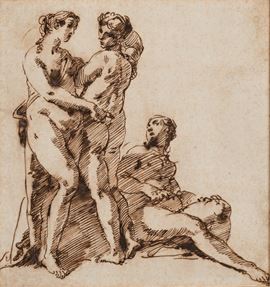 Il bel foglio mostra strette affinità stilistiche con il disegno conservato all’Art Museum dell’Università di Princeton (inv. x1946-1), raffigurante Ninfe al bagno e databile tra il 1739 e il 1743. In particolare, si riscontra una medesima resa fisionomica e una simile rapidità e precisione nel tratteggio con cui vengono rese le ombreggiature dei corpi.
