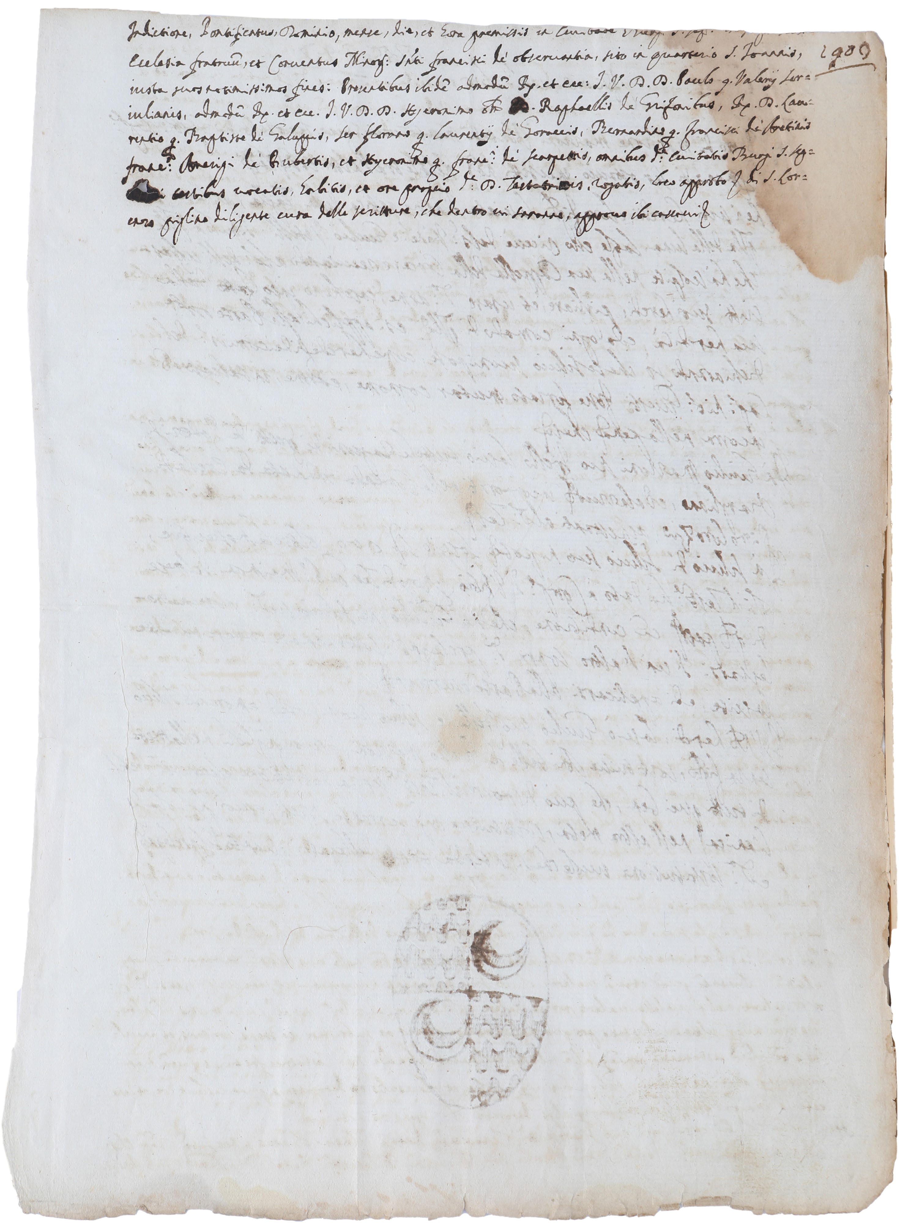 Lettera con scudo della famiglia Vitelli