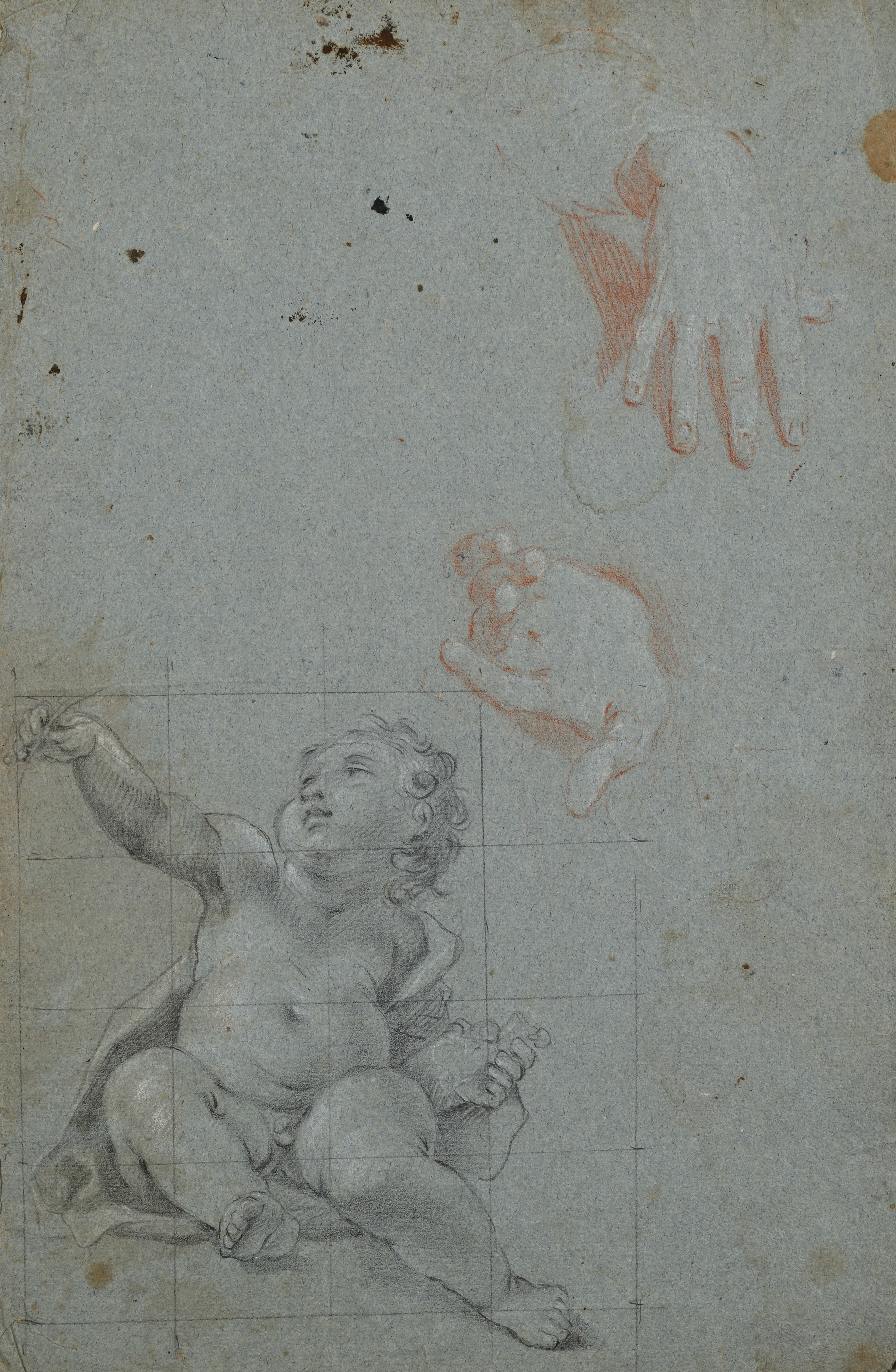 Recto: Studio di puttino e mani - Verso: Madonna con bambino