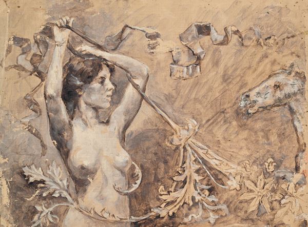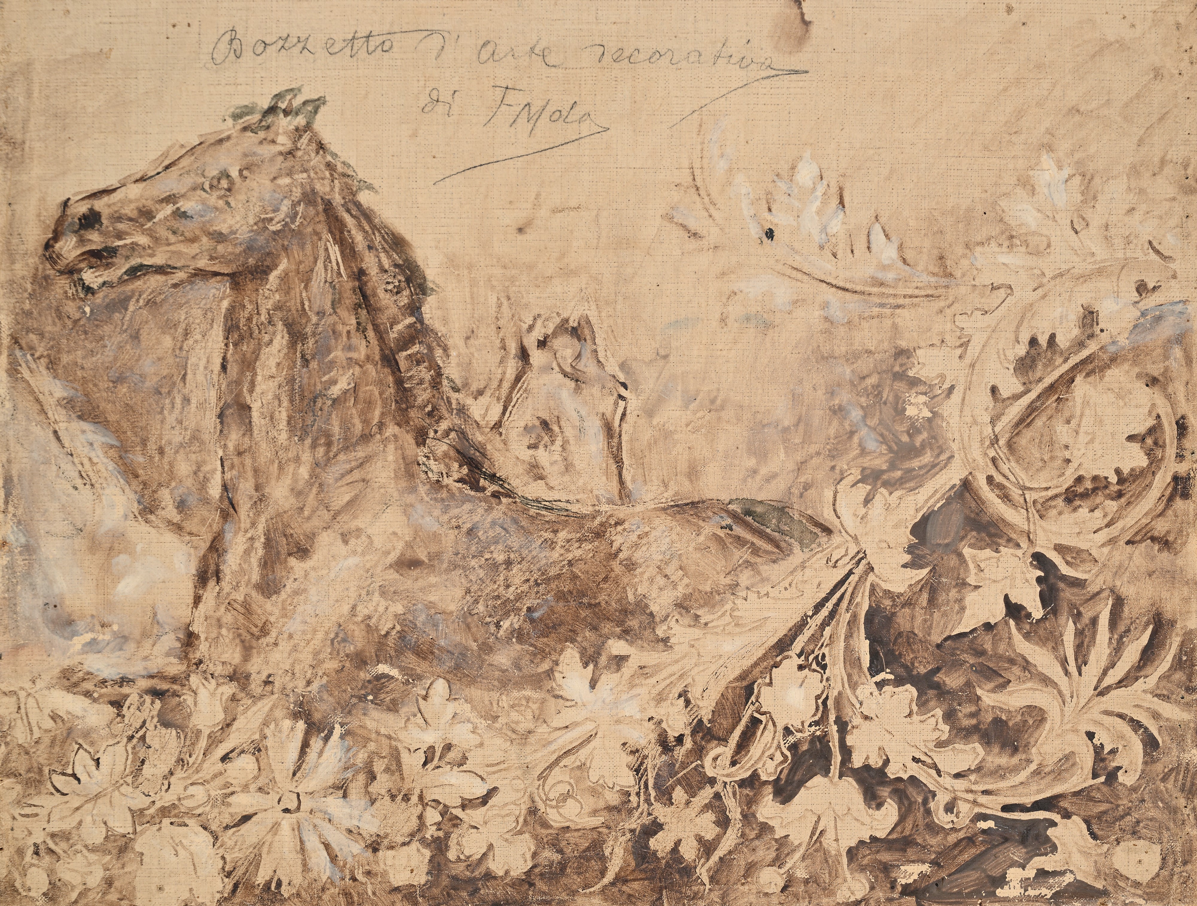Firmato e titolato in alto al centro "Bozzetto d'arte decorativa di F Mola"