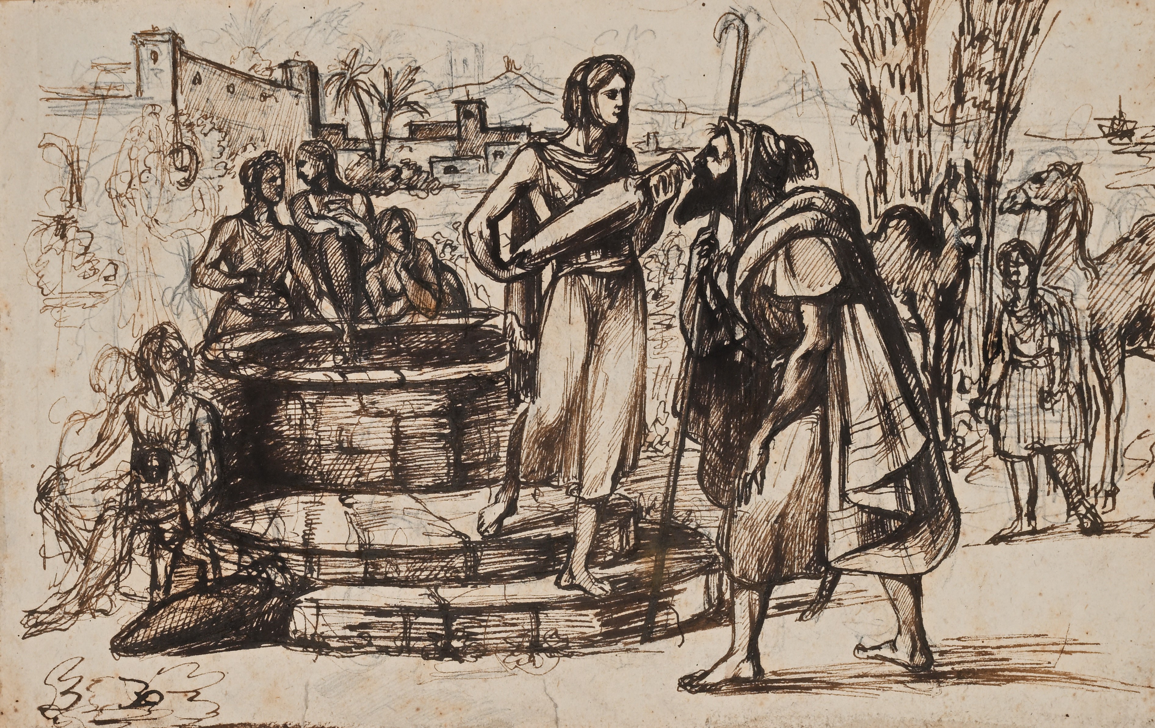 Recto: Studio per Rebecca al pozzo - Verso: Studio di gamba