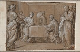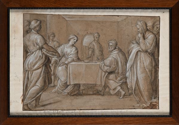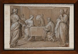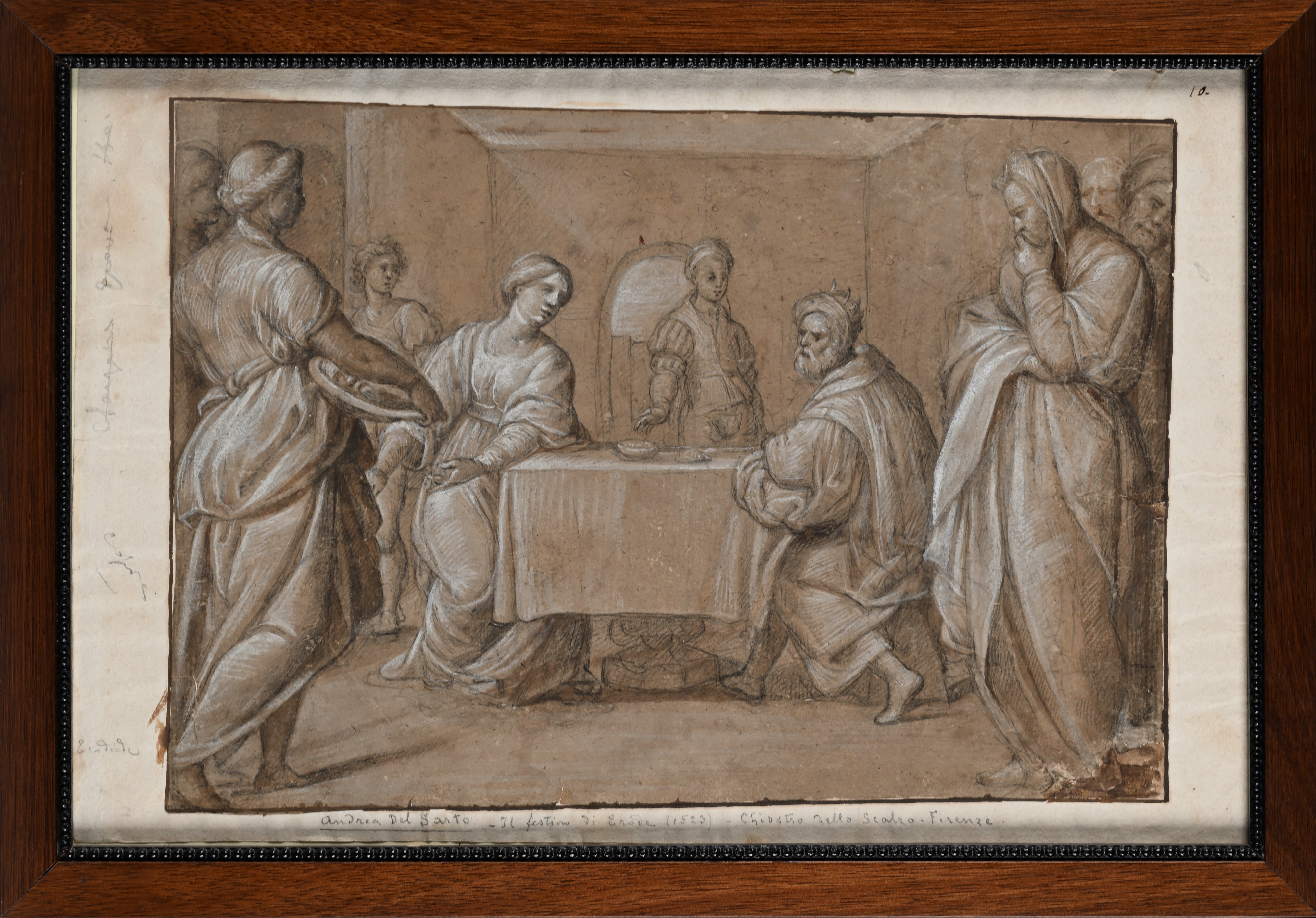 Il disegno replica l'affresco realizzato da Andrea del Sarto nel Chiostro dello Scalzo a Firenze