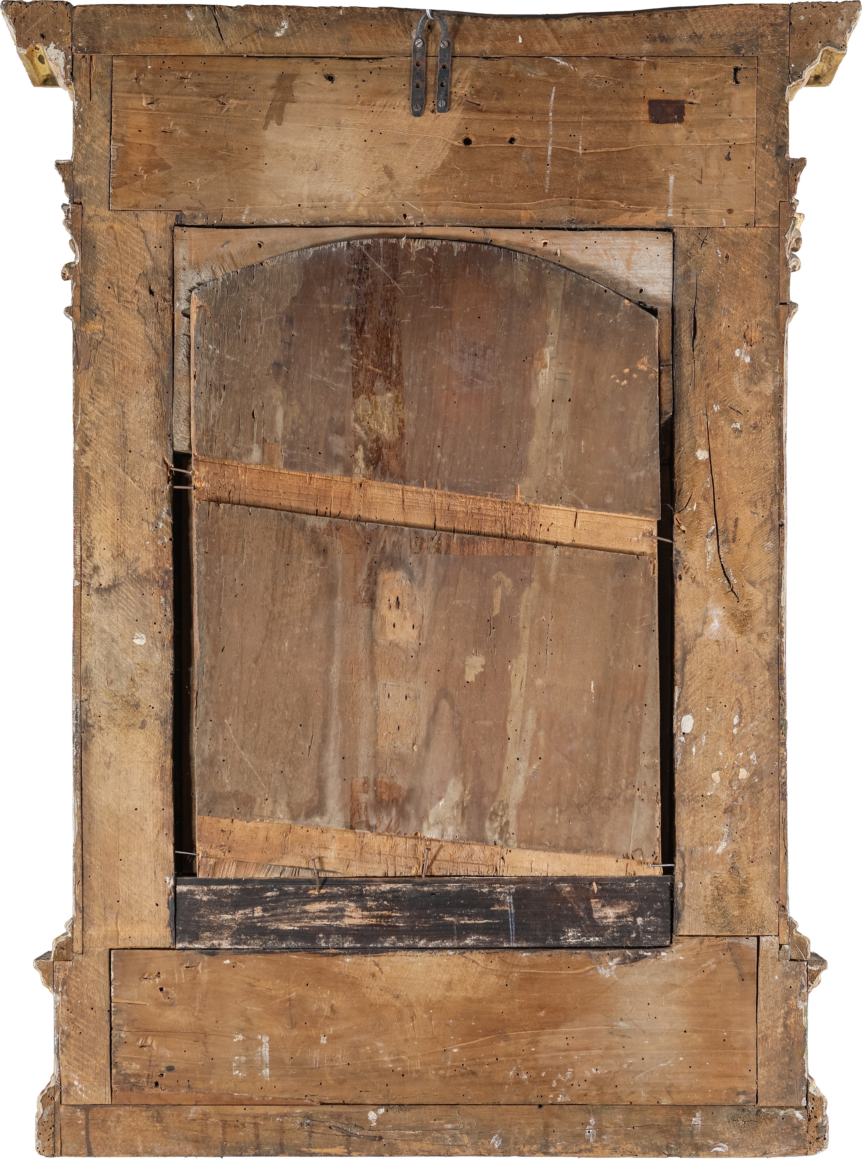 Questa tavola è documentata nell’Archivio Zeri come Madonna col Bambino. Dopo una pulitura è riemersa la figura del san Giovannino, restituendo la composizione originaria e confermando l’attribuzione ad Arcangelo di Jacopo del Sellaio.