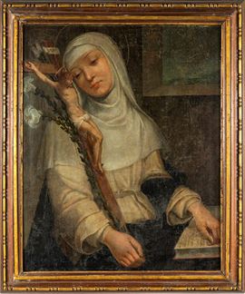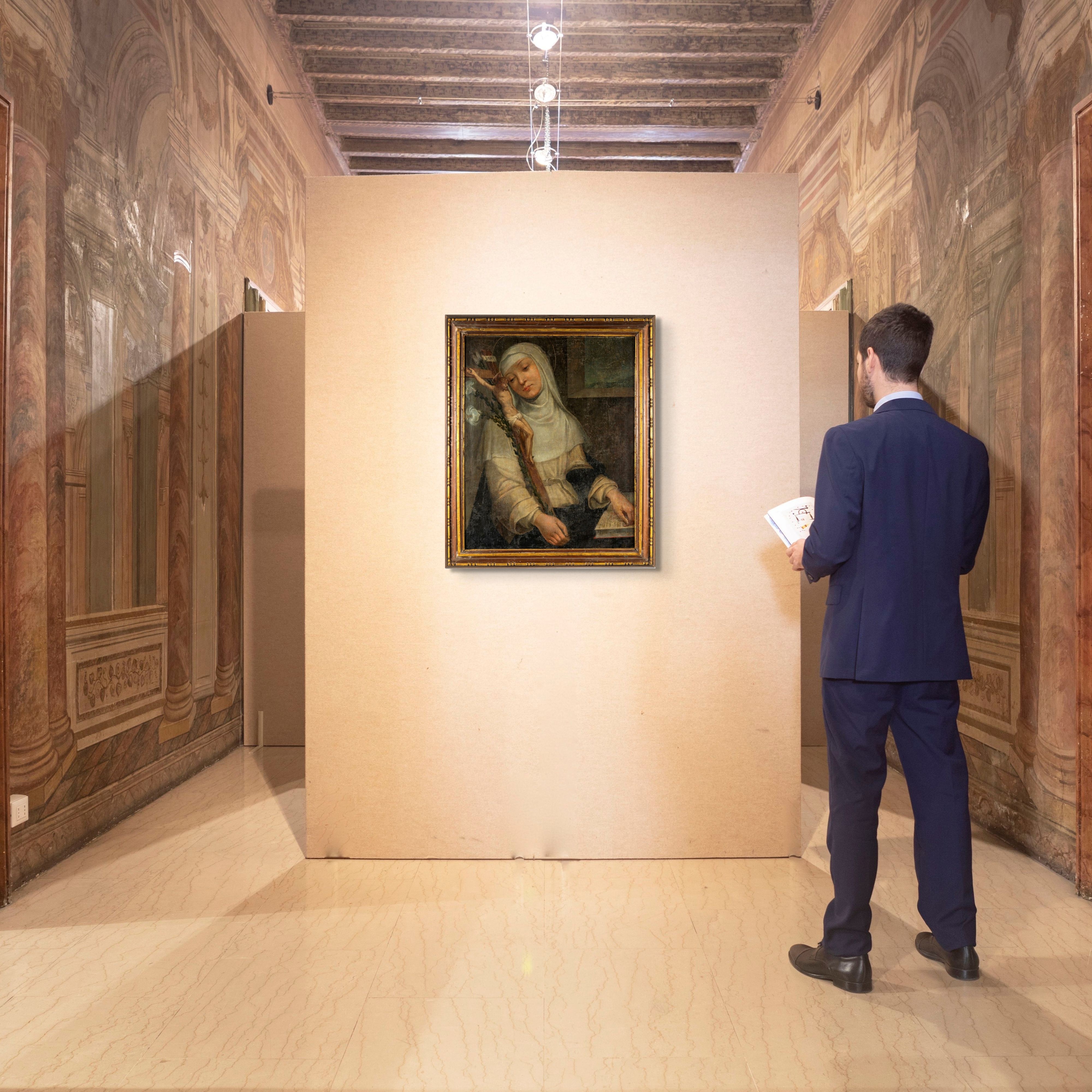 La delicata santa Caterina, che stringe amorevolmente un crocifisso con lo stesso braccio con cui sostiene il giglio, è un'opera che unisce la dolce grazia di Alessandro Casolani alla delicatezza cromatica di Francesco Vanni, pittori dalla cui arte prese avvio lo stile di Francesco Bartalini, uno dei più apprezzati pittori senesi del suo tempo, che non ha goduto della fortuna storiografica dei suoi colleghi. L'intensa santa Caterina, infatti, è paragonabile alle garbate figure della Madonna col Bambino e i santi Sigismondo e Giovanni Battista dipinta da Bartalini per la chiesa Sant'Innocenza a Piana presso Buonconvento e oggi nel locale Museo d'Arte Sacra della Val d'Arbia, opera datata 1604, anno che possiamo ritenere prossimo anche per l'opera in esame.