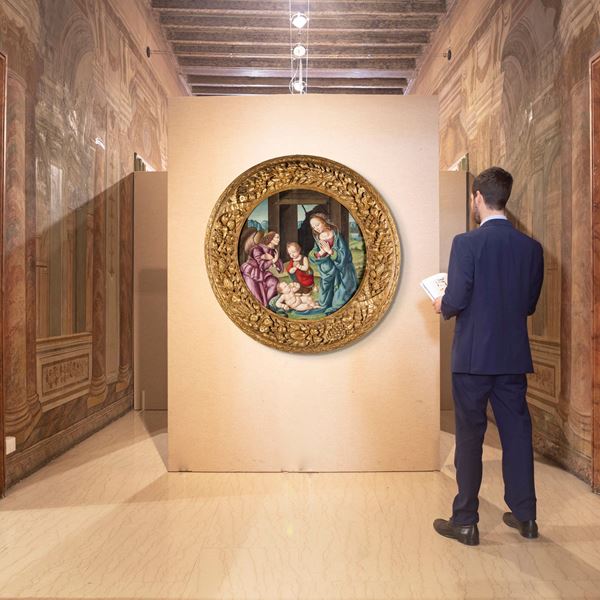 Come osservato già da Venturi, diversi tondi di analogo carattere, già attribuiti a Lorenzo di Credi o alla sua bottega, presentano affinità con l’opera in esame, in particolare nella resa levigata delle carni e nei contorni netti e metallici dei capelli. Venturi menziona esempi analoghi nella Cattedrale di Pistoia (già ascritta a Lorenzo di Credi, ma da lui esclusa per l’intensità degli scuri), nella collezione Dreyfuss a Parigi e nella collezione del Museo di Monaco di Baviera.