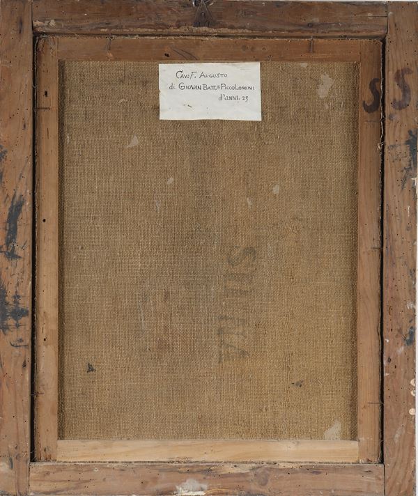 Iscrizioni: CAV. F. AUGUSTO / DI GIOVAN BATT.A PICCOLOMINI / D'ANNI 25, in un'etichetta sul retro