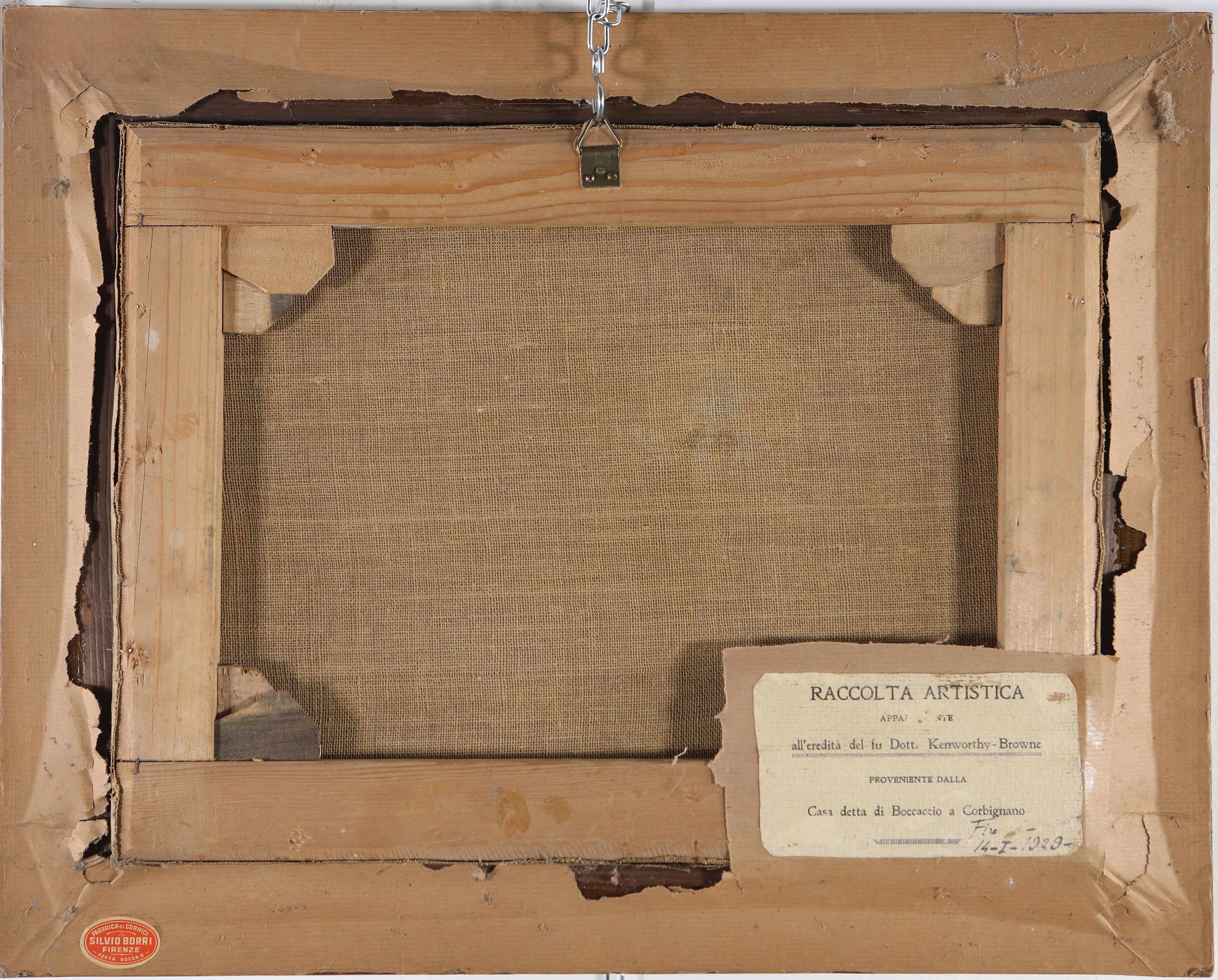 Etichetta sul retro: Raccolta artistica appartenente all’eredità del fu Dott. Kenworthy‑Browne, proveniente dalla Casa detta di Boccaccio a Corbignano – 14.I.1929