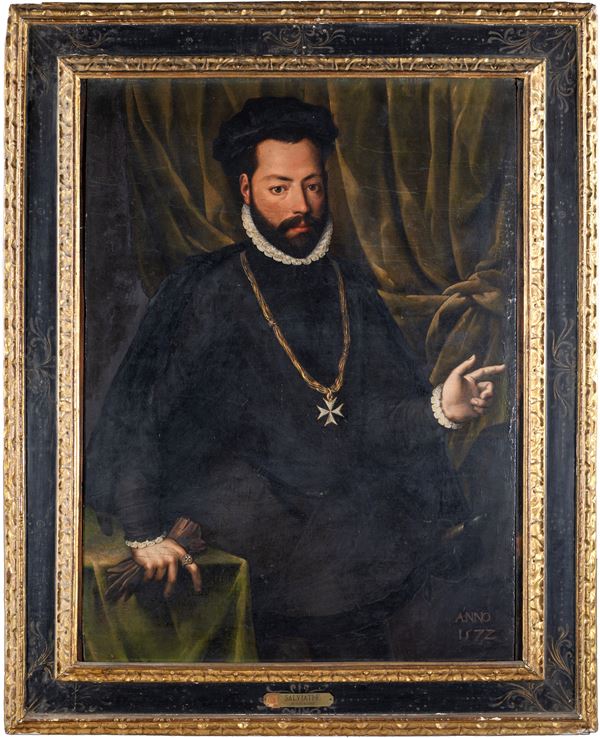 L’opera è stata attribuita in passato a Francesco Salviati (1510–1563), importante esponente del manierismo fiorentino, e con tale attribuzione schedata e pubblicata nell’Archivio Fotografico Federico Zeri. Tuttavia, l’iscrizione con data '1572', posteriore alla morte dell’artista, rende tale attribuzione improbabile. Stilisticamente, l’opera richiama ancora l’eleganza grafica e la solennità della ritrattistica salviatesca, ma si avvicina piuttosto alla pittura di ambito toscano della generazione successiva, in particolare a pittori come Mirabello Cavalori o alla cerchia italiana di El Greco.