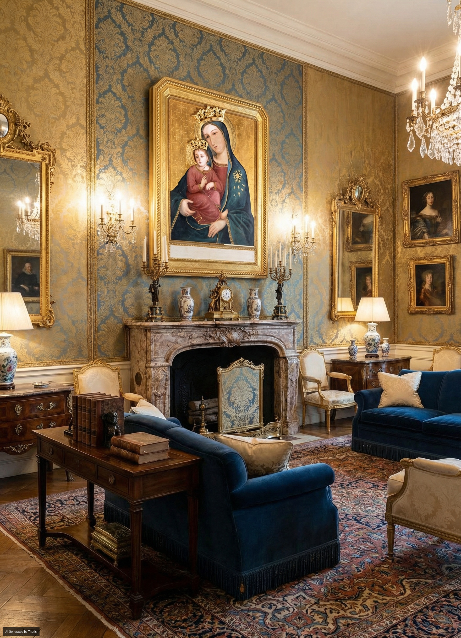 Si tratta di un’opera di carattere devozionale, probabilmente destinata ad altare laterale o cappella di confraternita. La Madonna e il Bambino sono coronati con corone metalliche in rilievo, elemento che testimonia un culto popolare e la funzione liturgica dell’opera, in una tradizione nata dal gesto devozionale di incoronare la Vergine come segno di venerazione e riconoscimento del suo ruolo di Regina del Cielo. La Vergine, raffigurata in posa ieratica (maiestas) con manto blu decorato da una stella, richiama la specifica iconografia della Madonna della Stella, enfatizzandone il carattere regale e celeste.
