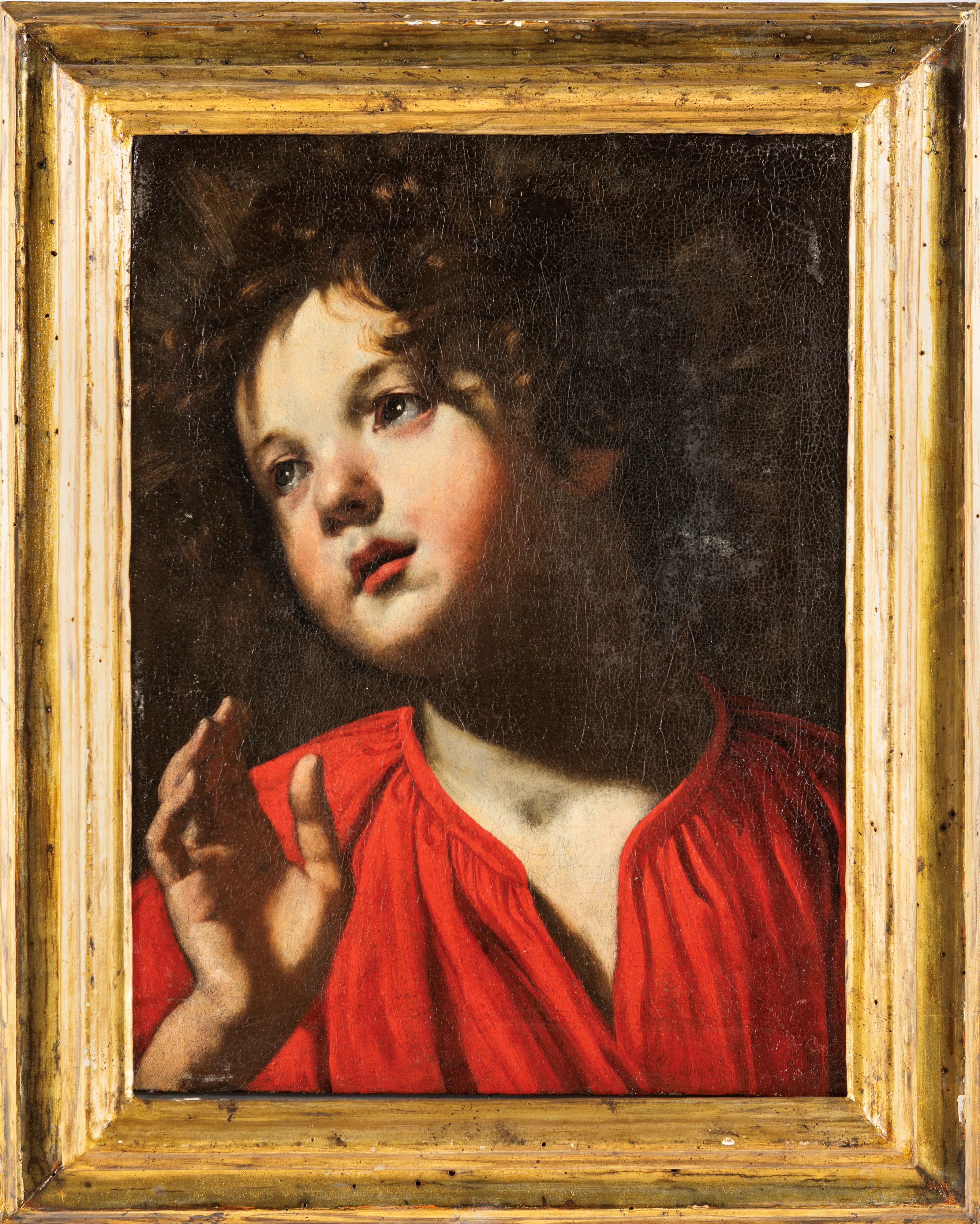 Il dipinto raffigura un giovane fanciullo a mezzo busto su fondo neutro, con particolare attenzione al volto e agli abiti. La resa dei materiali, dalla morbidezza della pelle alla lucentezza dei tessuti, rivela l’elevata perizia pittorica e l’interesse per il realismo tipico della pittura fiorentina del primo Seicento.