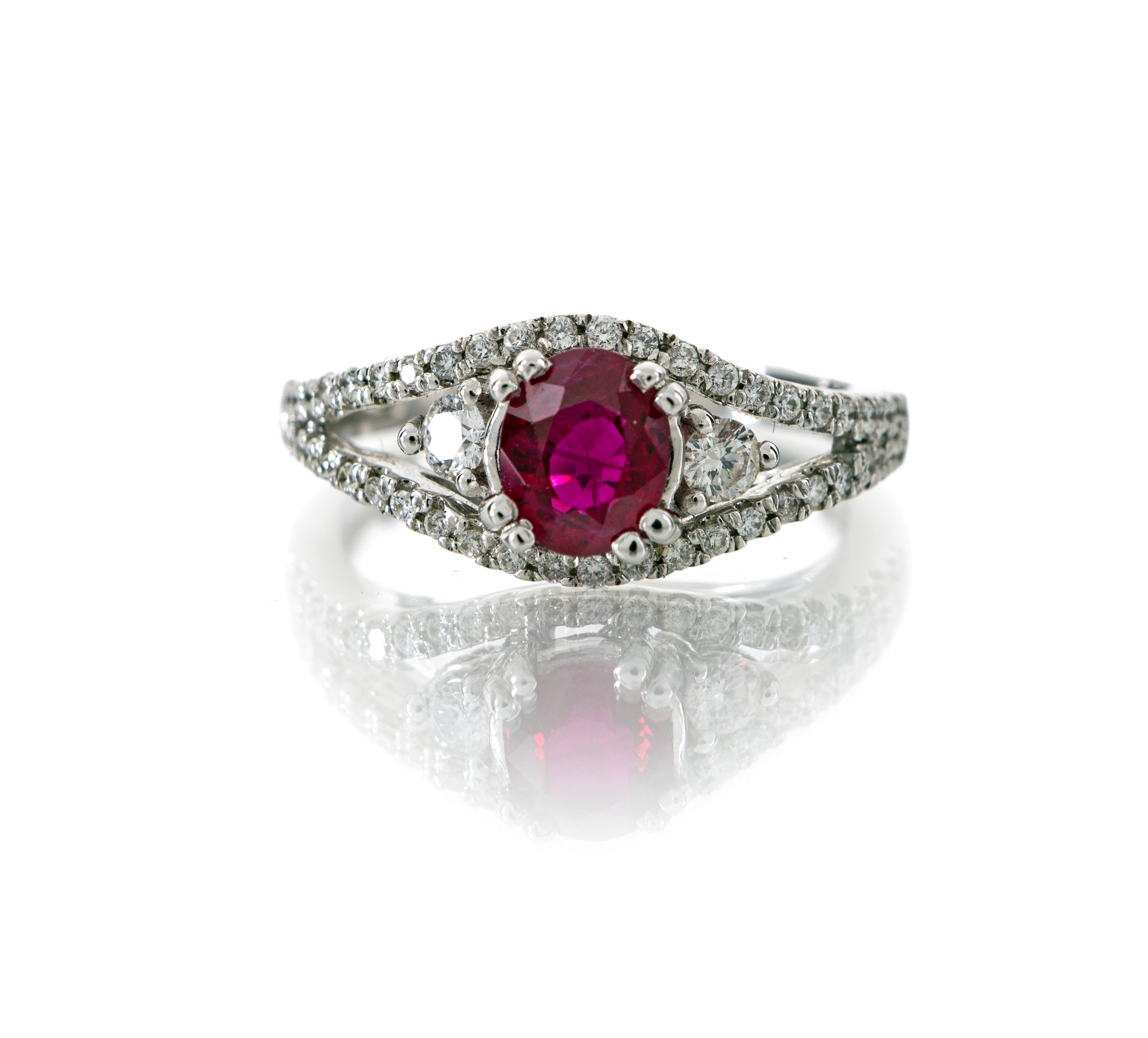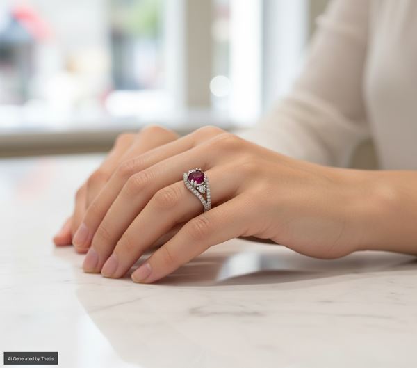 Oro bianco 750/000. Rubino in taglio ovale ct. 1,10. Peso complessivo gr. 5,10