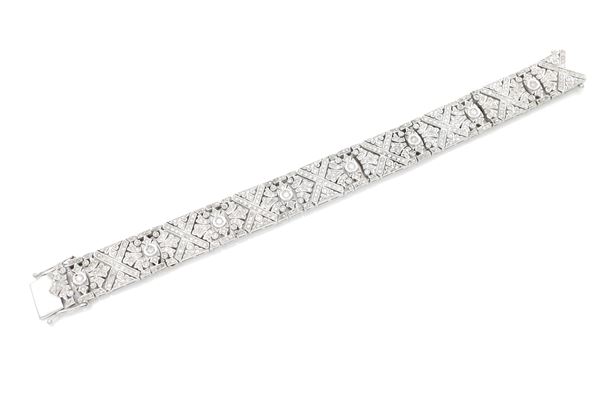 Oro bianco 750/000. Diamanti in taglio rotondo brillante ct. 5,00. Peso complessivo gr. 42,30.
