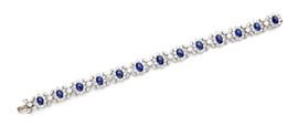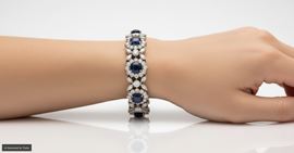 Platino 950/000. Diamanti in taglio rotondo brillante, navette ct 13,50 ca, Zaffiri in taglio cabochon ct 12 ca. Peso complessivo gr 38,50