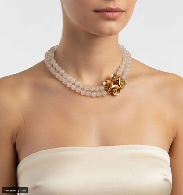 Collana in oro, turchesi e cristallo di rocca, Art Retrò