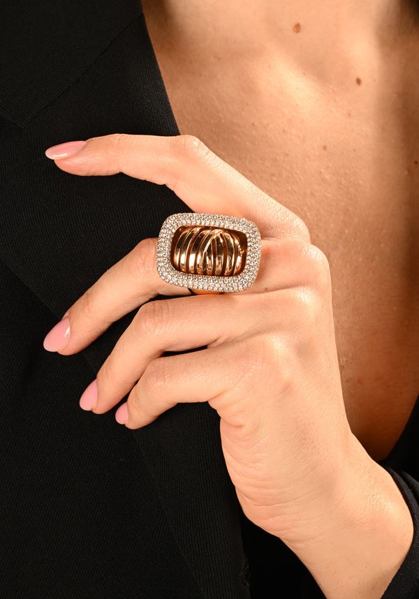 Oro bianco e rosa 750/000. Diamanti in taglio rotondo brillante ct, 4 ca., prob F-G, VVS-VS. Peso complessivo gr. 25.