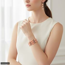 Parure, bracciale e orecchini in oro, corallo rosa, quarzi e brillanti