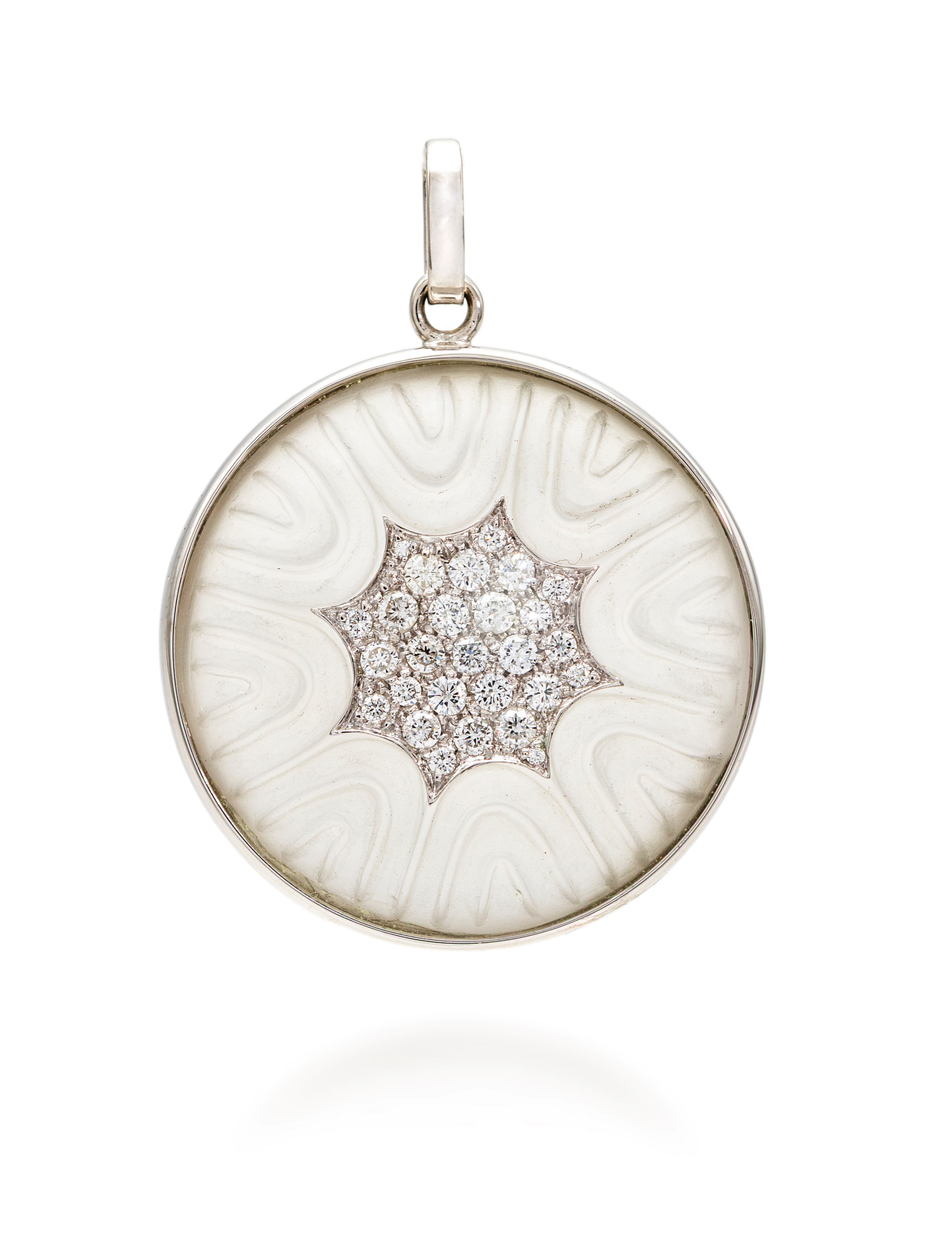 Pendente in oro, cristallo di rocca e brillanti