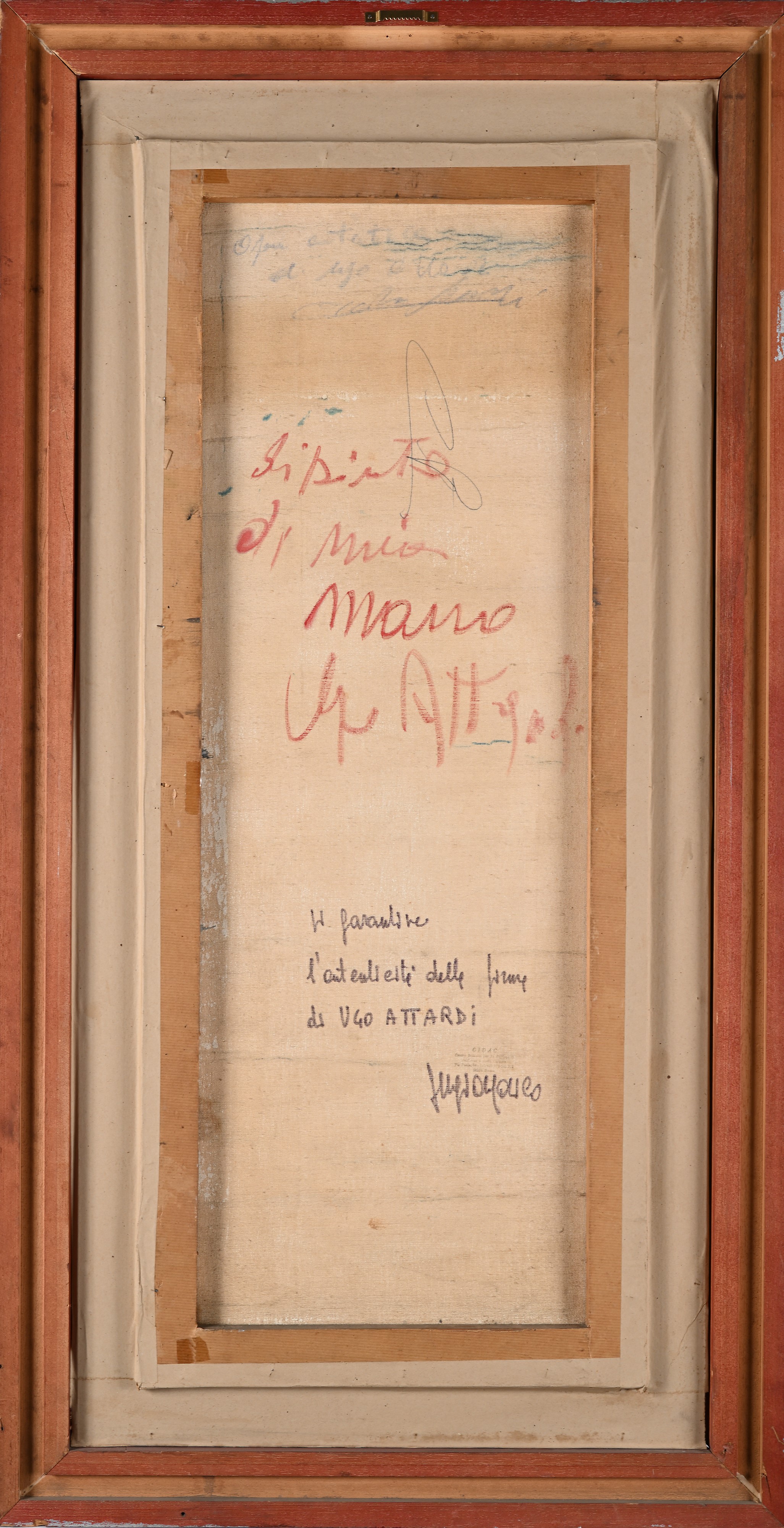 Firma in basso a sinistra "Attardi". Al verso reca autentica di pugno dell'artista e dichiarazione di provenienza con timbro non decifrato.