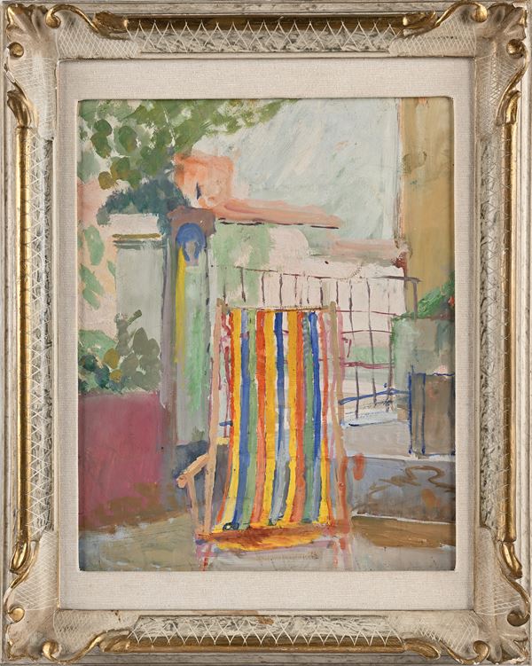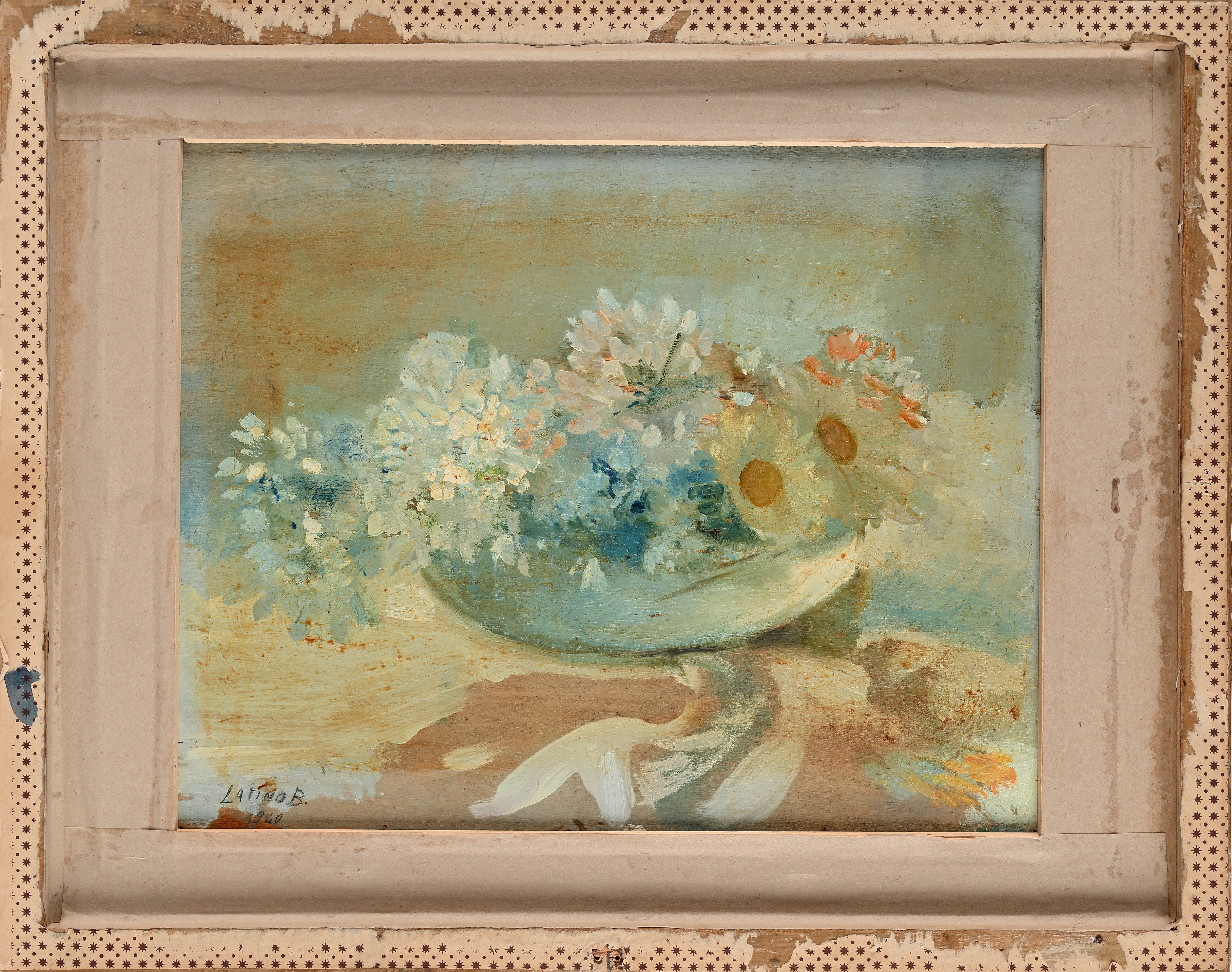 Al verso reca dipinto di cesto di fiori e firma "Latino B. 1940"