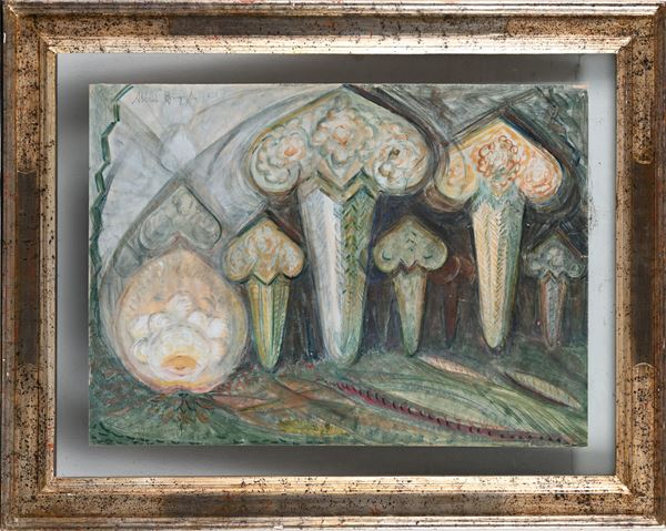 L'opera è realizzata su entrambe le facciate della carta. Al fronte una composizione astratto-futurista, firmata e datata in alto a sinistra "Alberto Bragaglia 1936". Al verso un gruppo di donne a passeggio