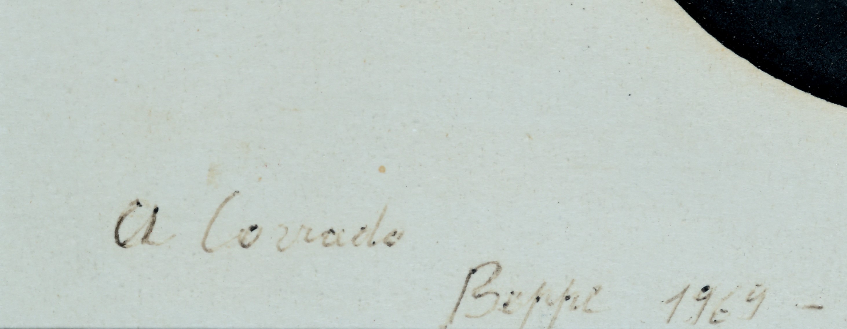 Dedica, firma e data in basso a sinistra: A Corrado, Beppe 1969.