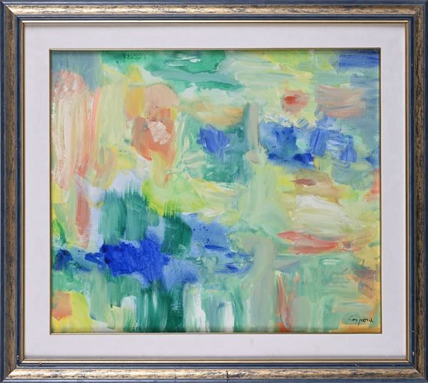 Firma in basso a destra "Corpora". Al verso reca titolo e autentica di pugno dell'artista