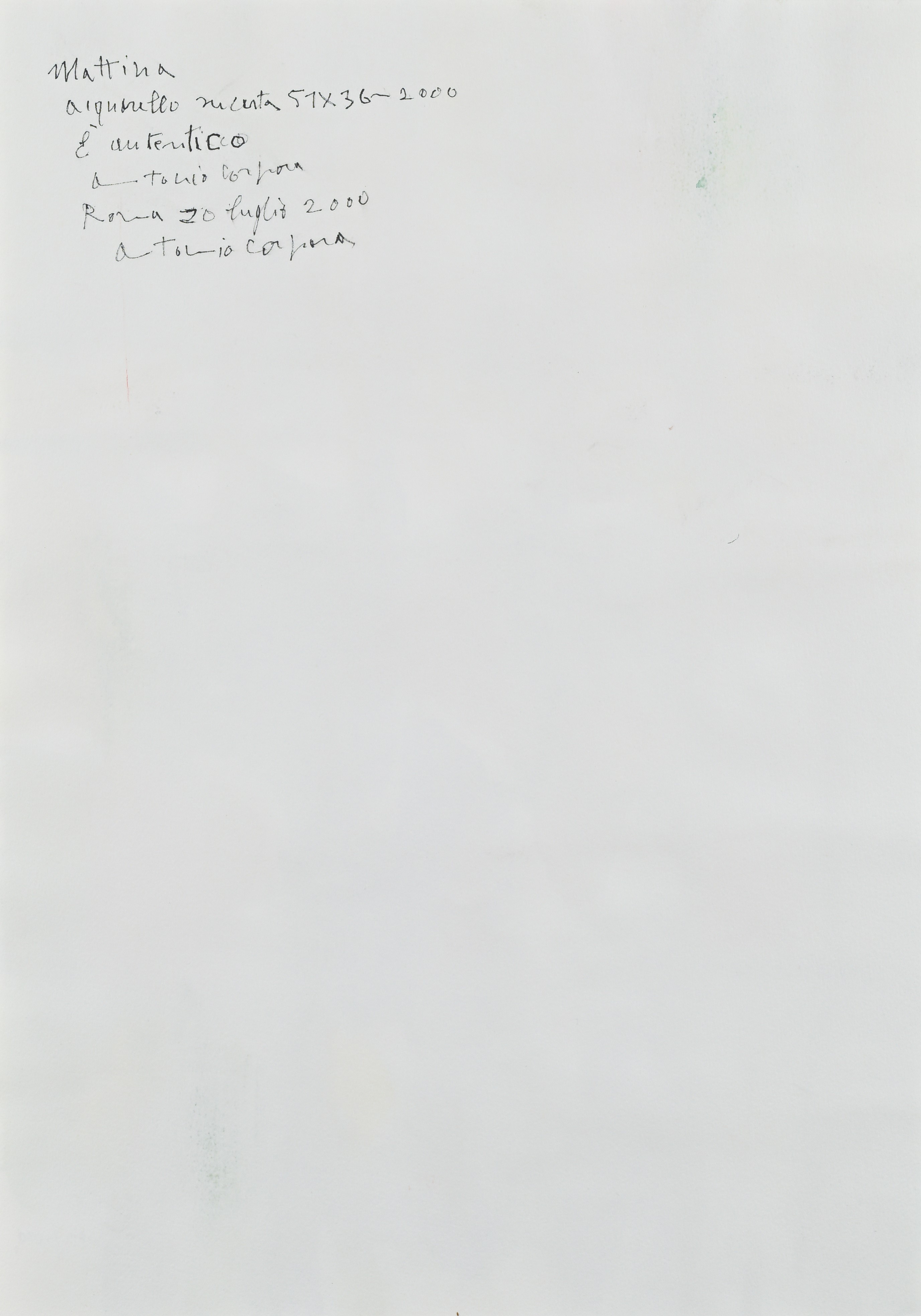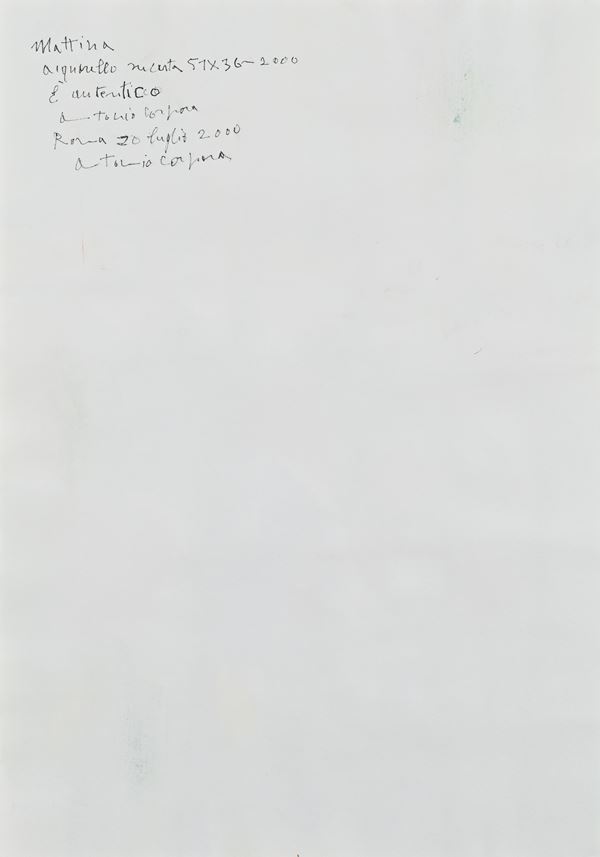 Firma in basso a destra "Corpora". Al verso reca titolo, data e autentica di pugno dell'artista