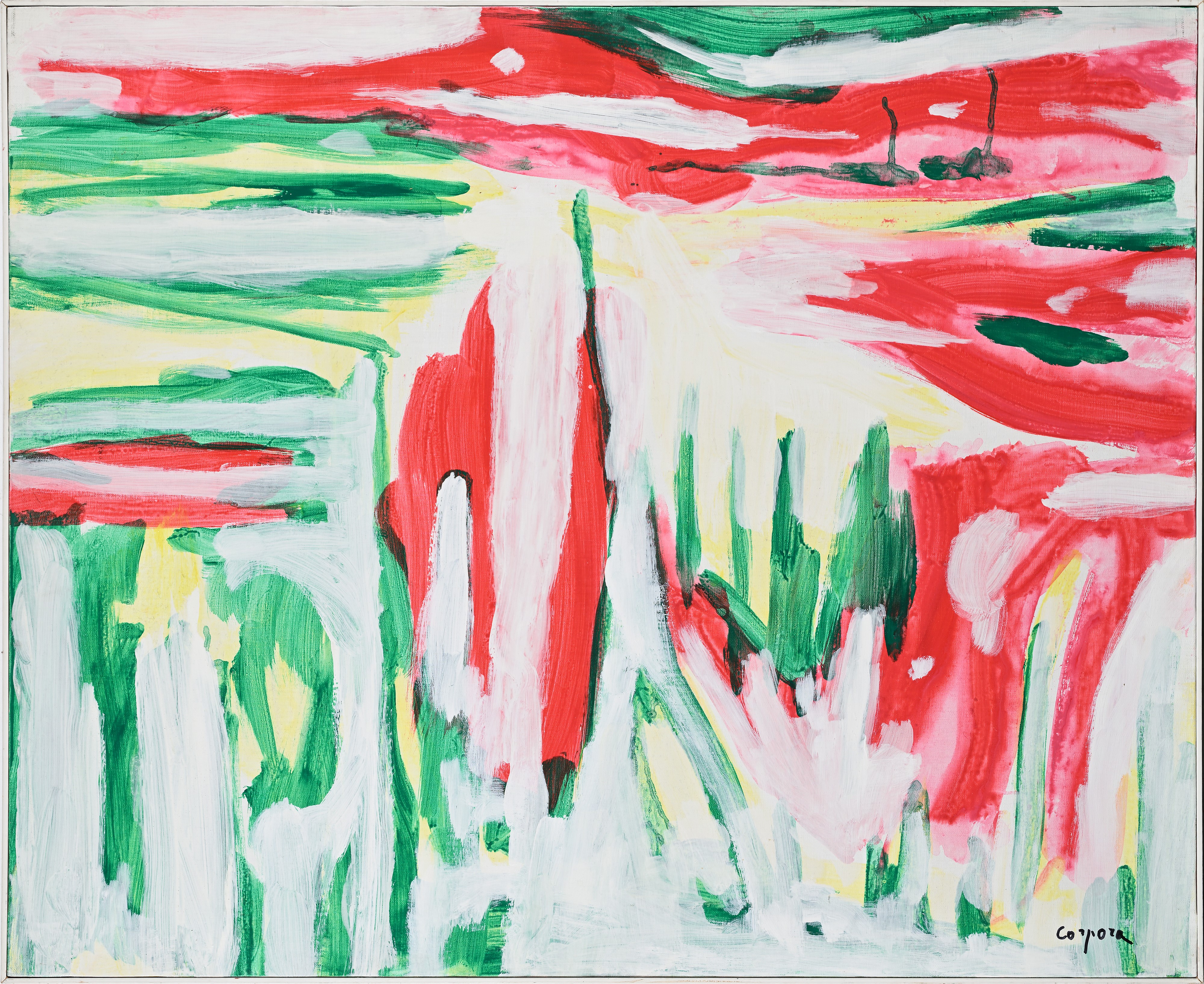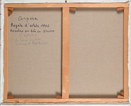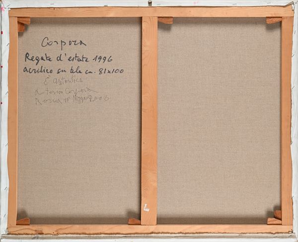Firma in basso a destra "Corpora". Al verso reca firma, titolo, anno e autentica di pugno dell'artista