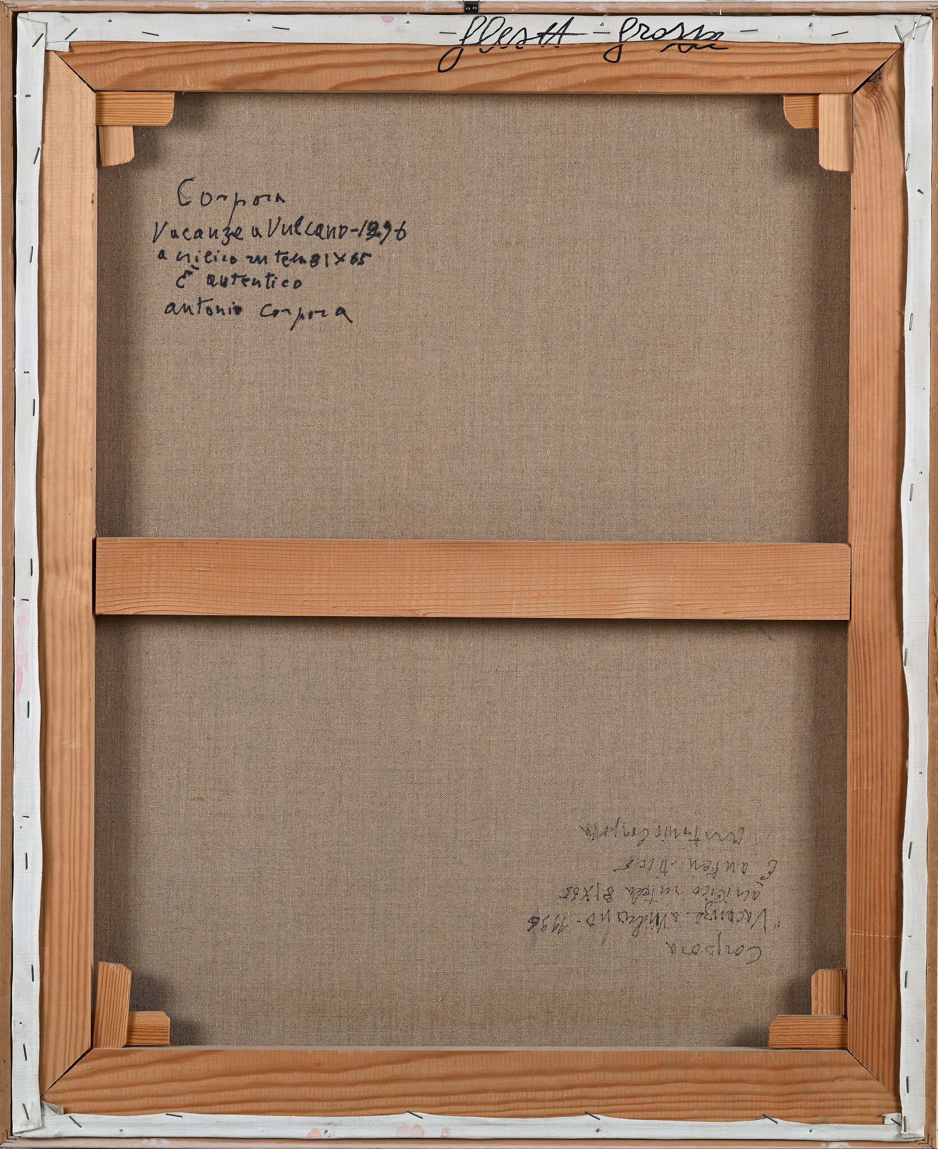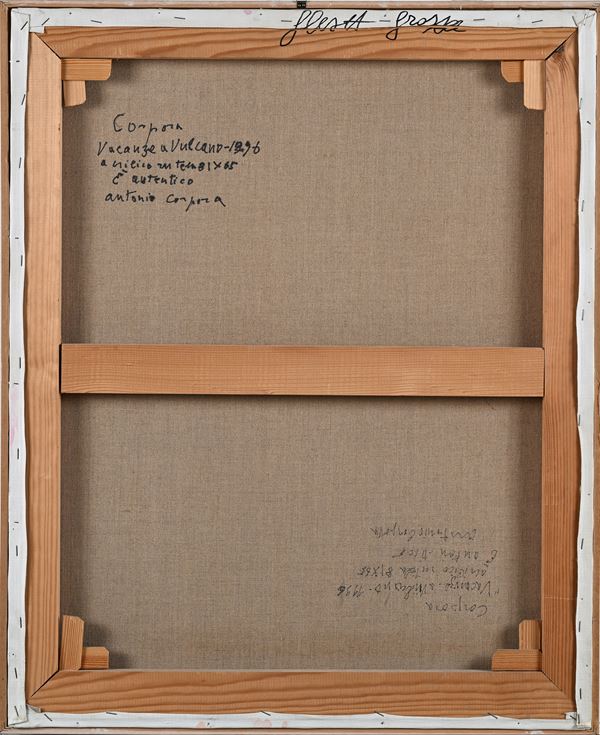 Firma in basso a destra "Corpora". Al verso reca firma, titolo, data e autentica di pugno dell'artista.