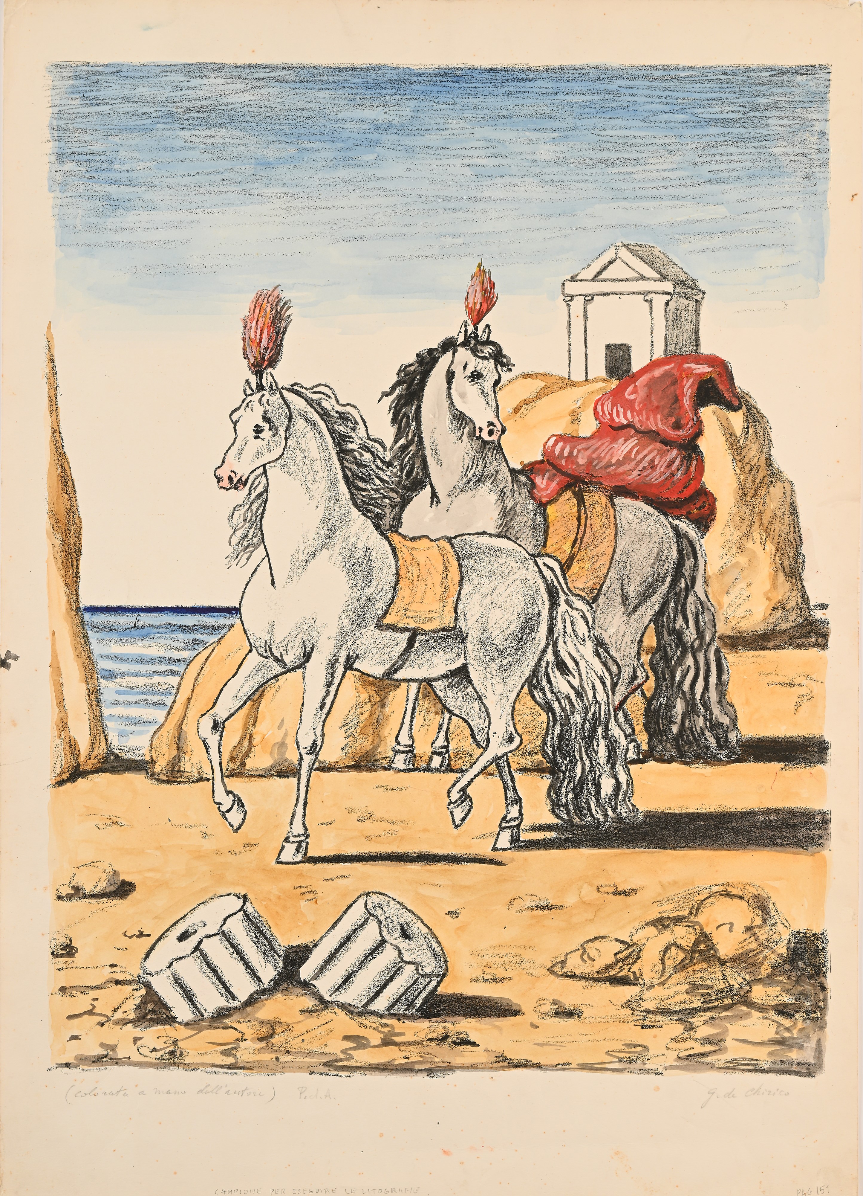 Firma e numerazione "G. De Chirico p.d.a. Colorata a mano dall'autore".