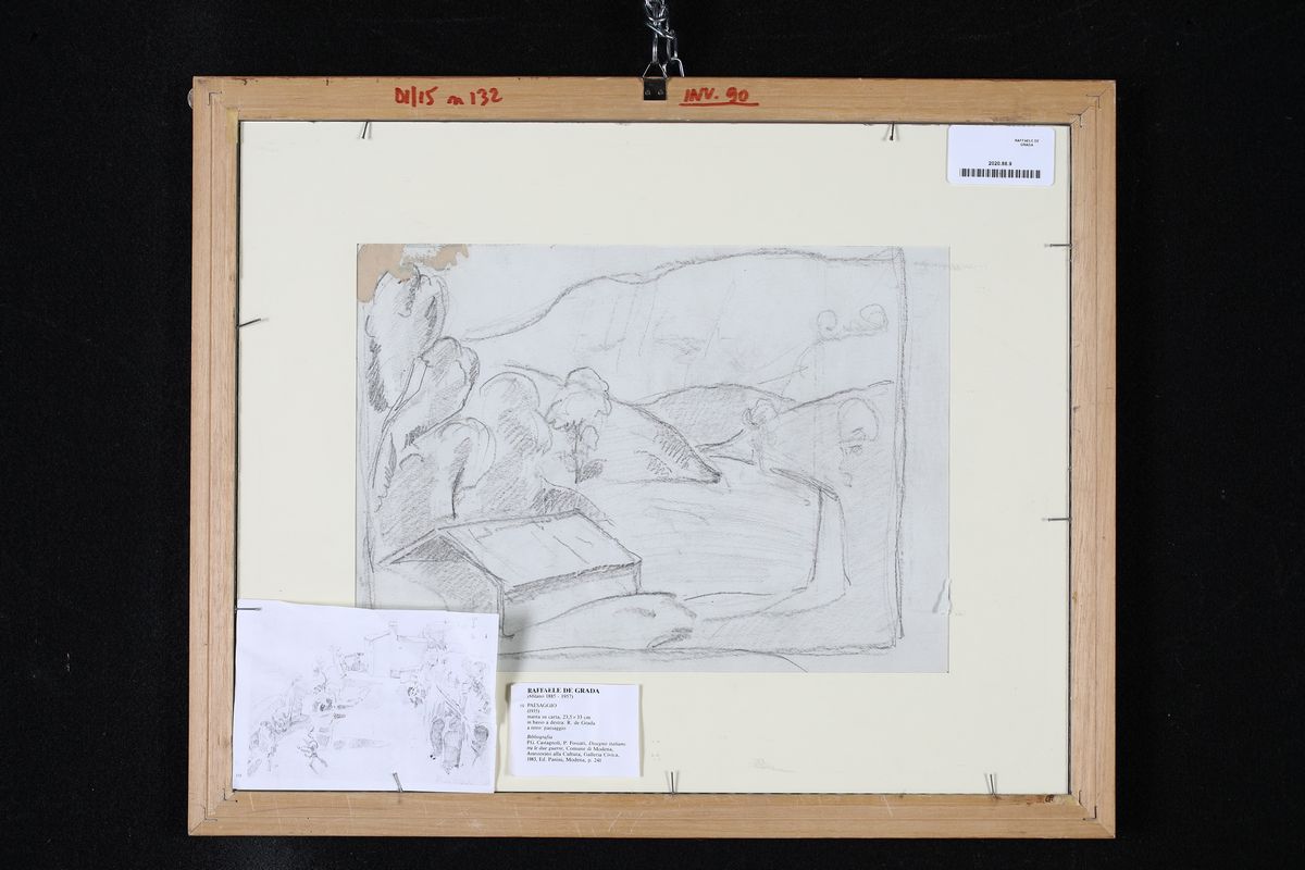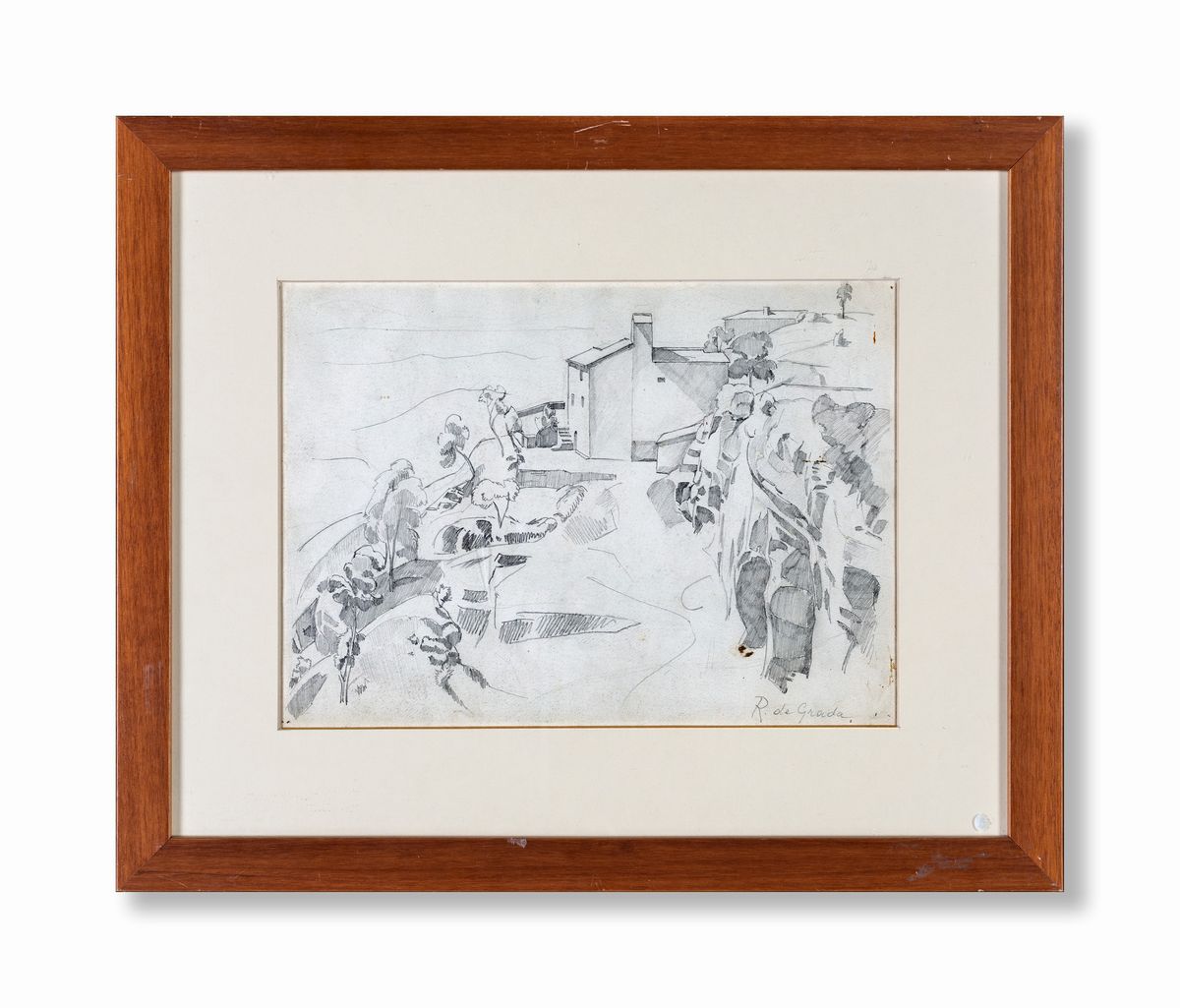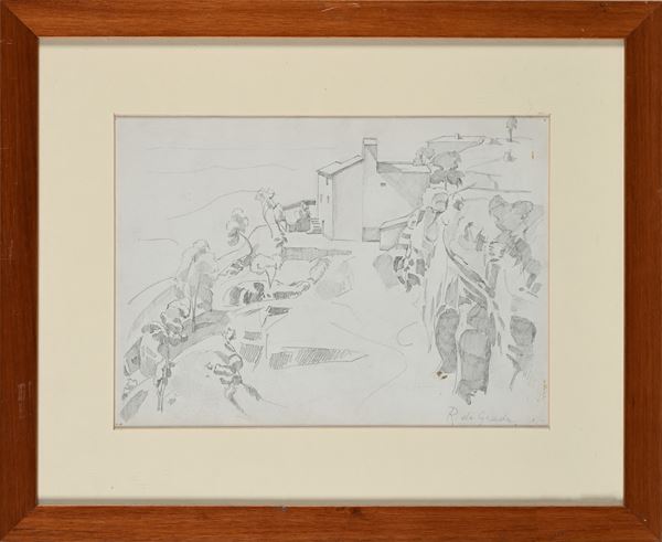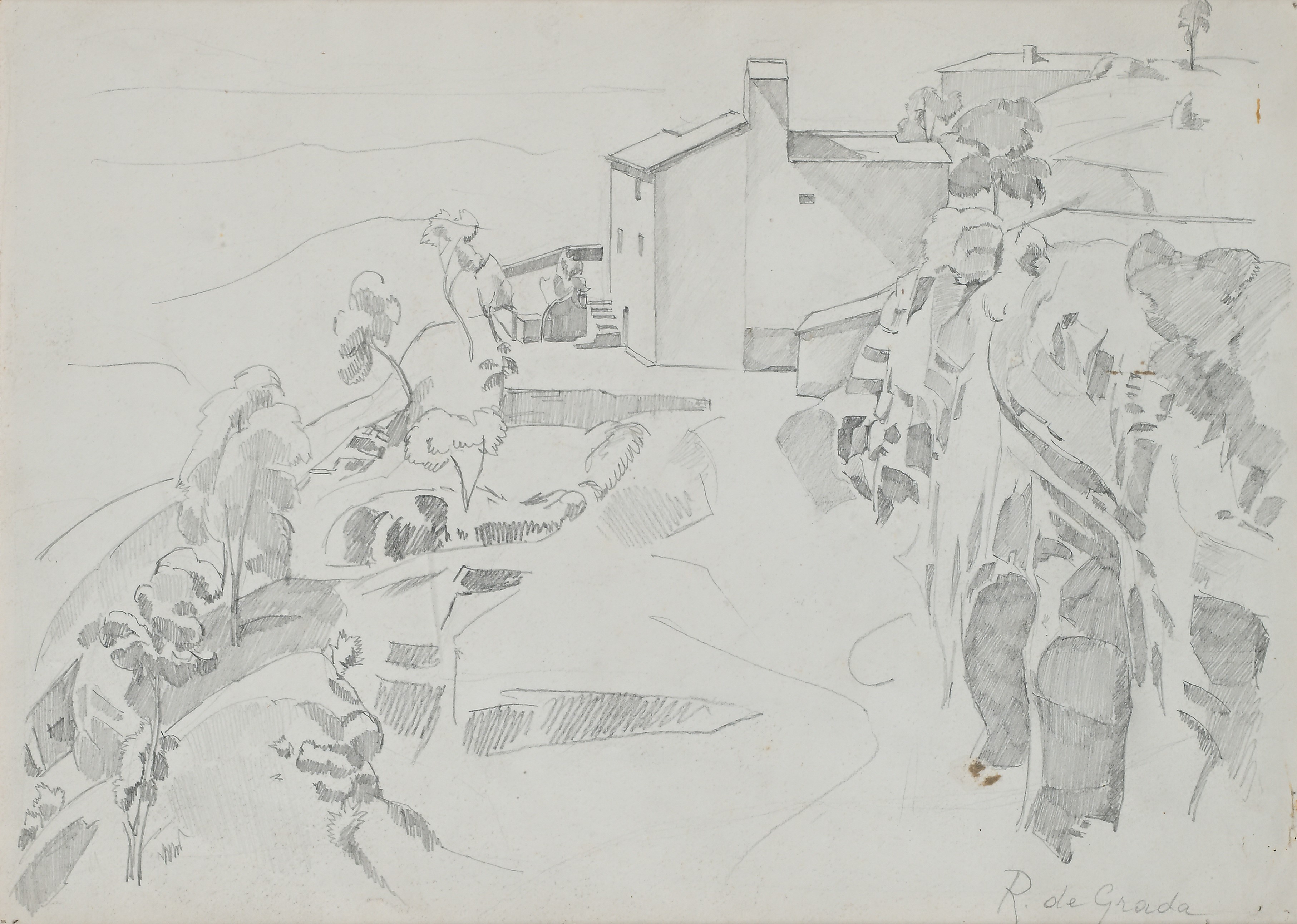 Firma sul fronte in basso a destra "R.De Grada". Al verso reca un'altro disegno a matita raffigurante un paesaggio con casolare.