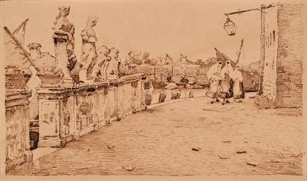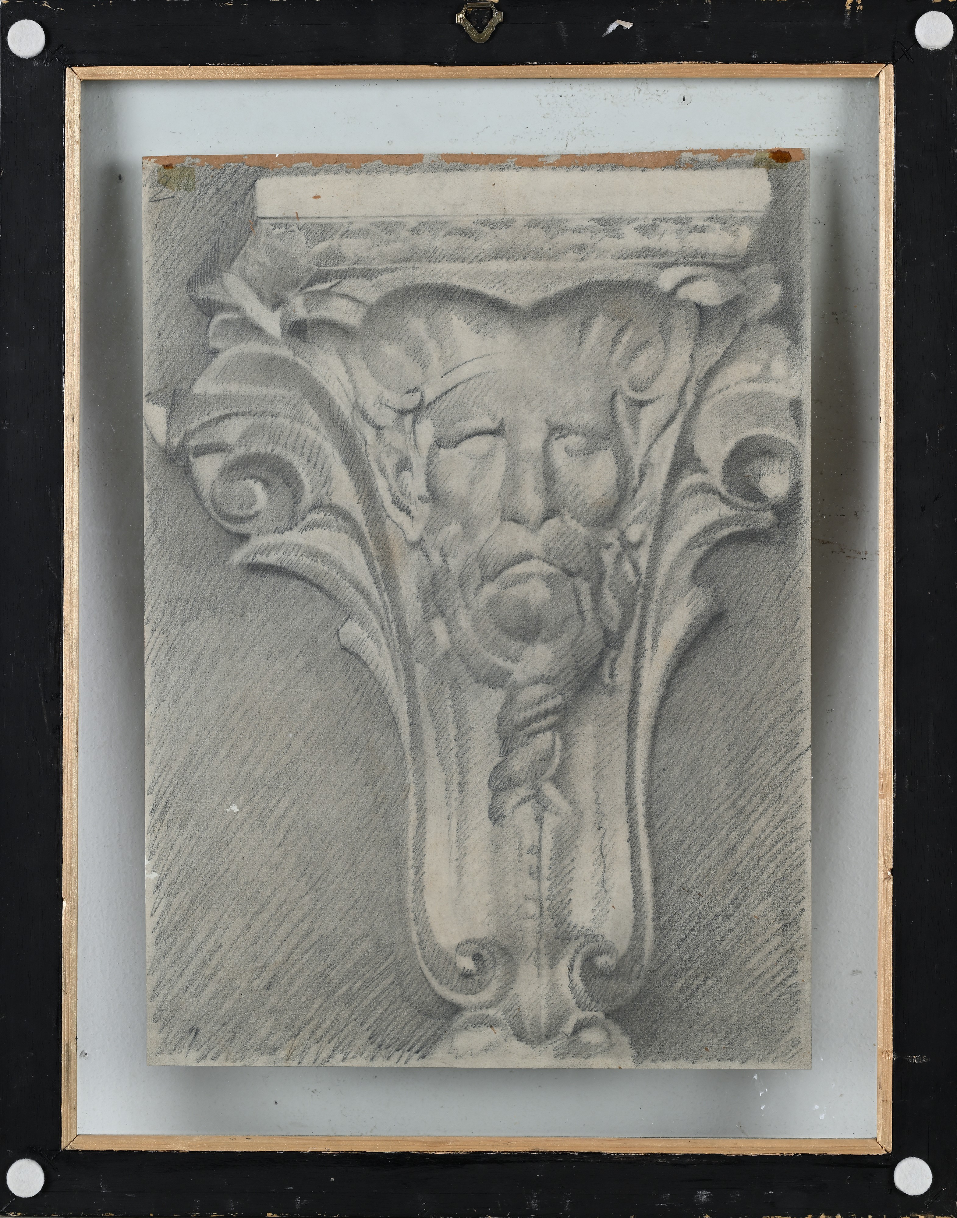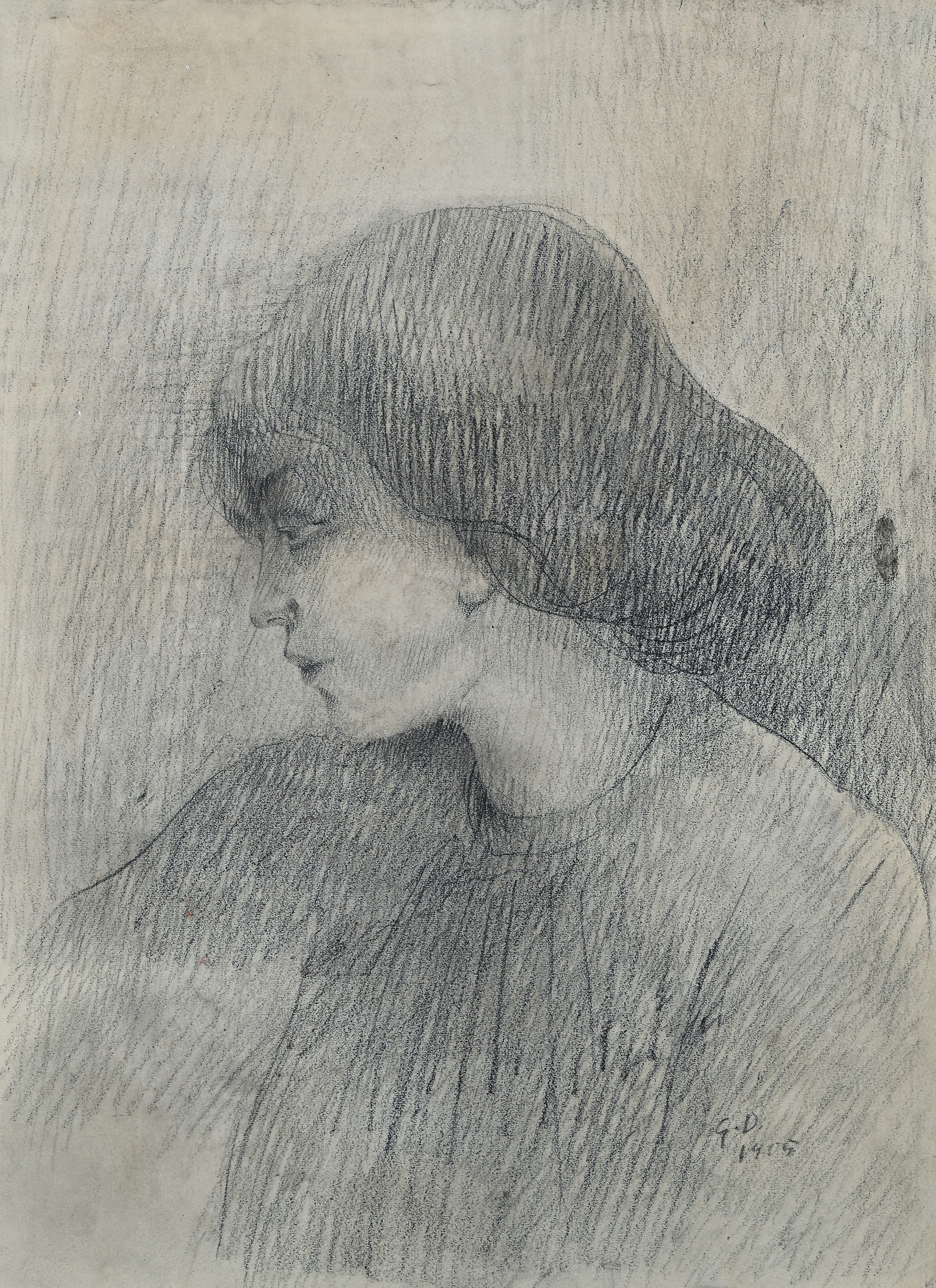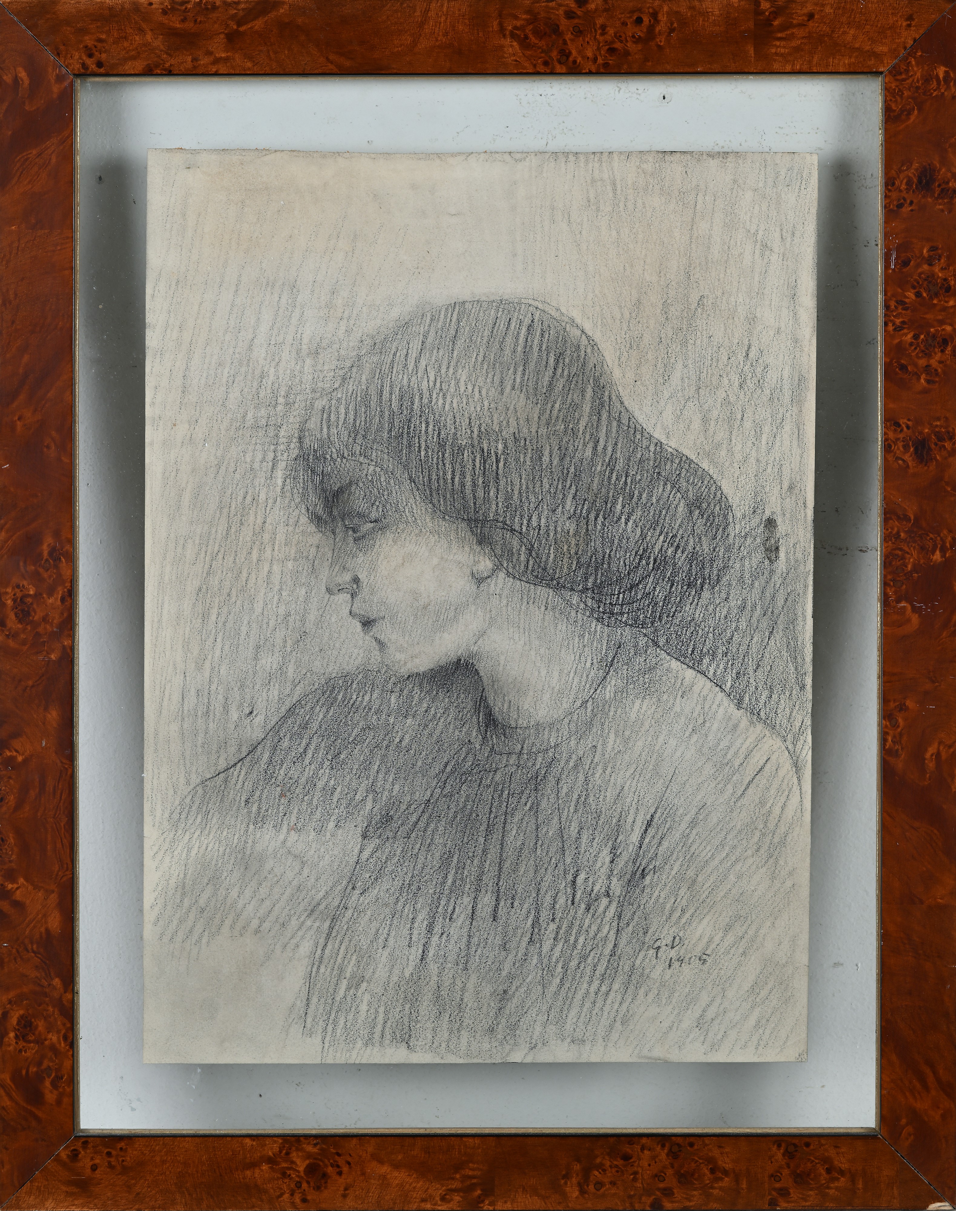 Siglato e datato sul fronte in basso a destra "G.D. 1905". Al verso reca un altro disegno a matita intitolato "Studio per elemento decorativo"
