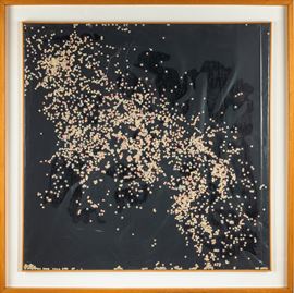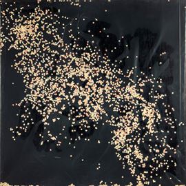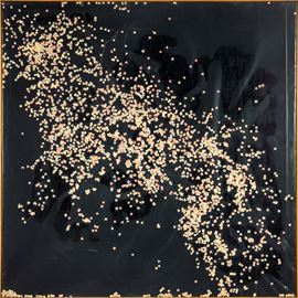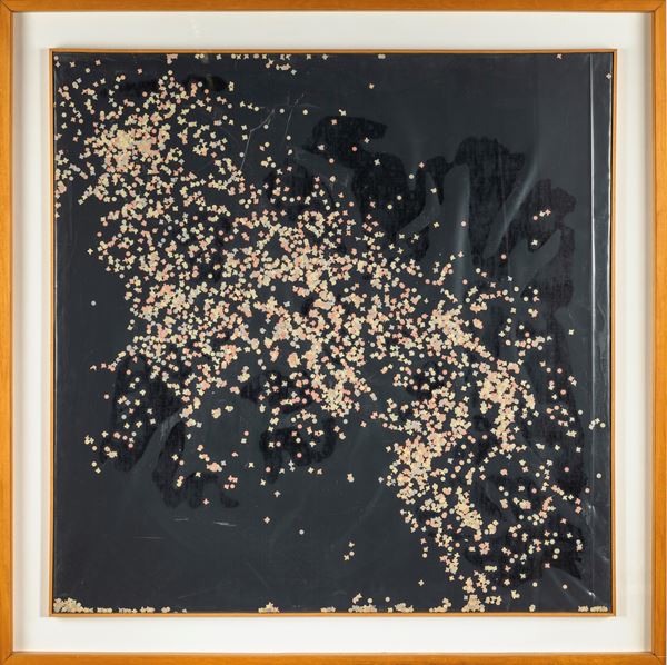 Coriandoli e pittura nera su tela