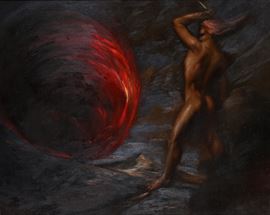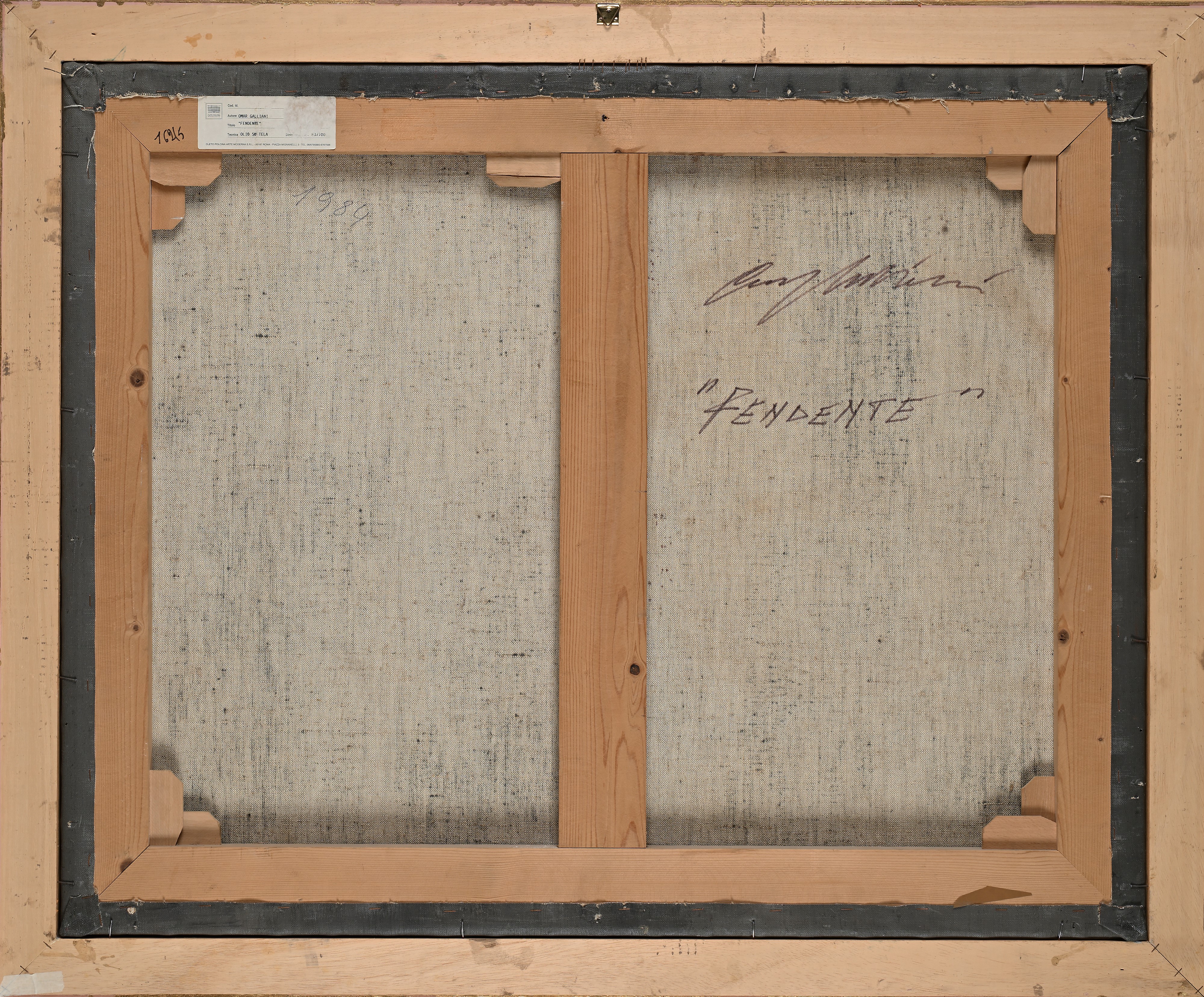 Firma, data e titolo al verso "Omar Galliani, Fendente, 1984". Etichetta galleria Cleto Polcina