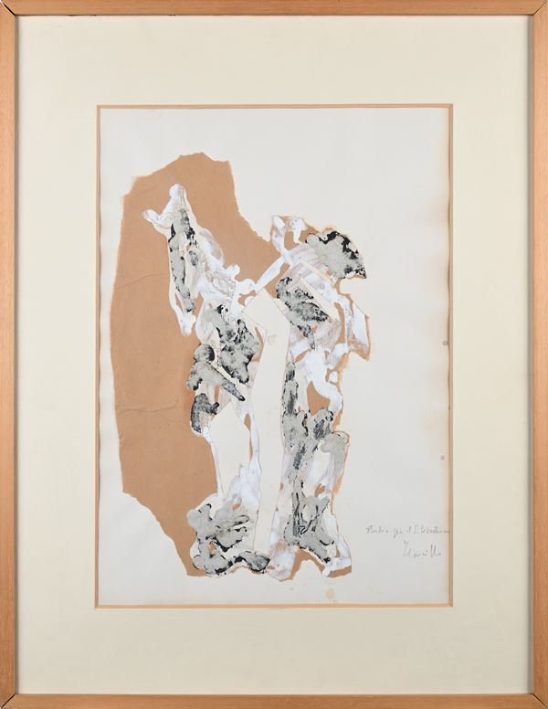 Tecnica mista (inchiostro, acrilici, sabbia e collage) su carta