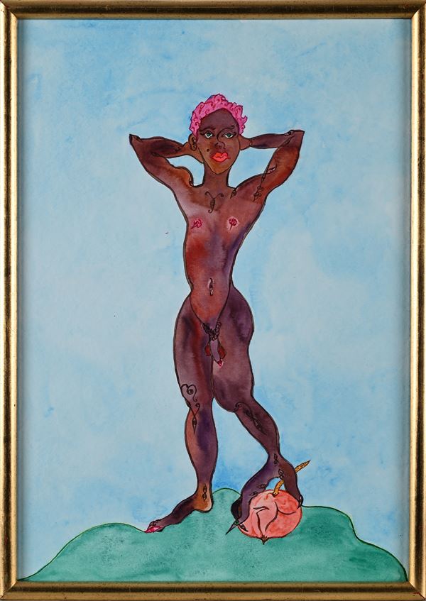 Al verso reca firma, titolo, data e luogo "Moro Montano del melograno, Luigi Ontani India 2000/2018 Roma"