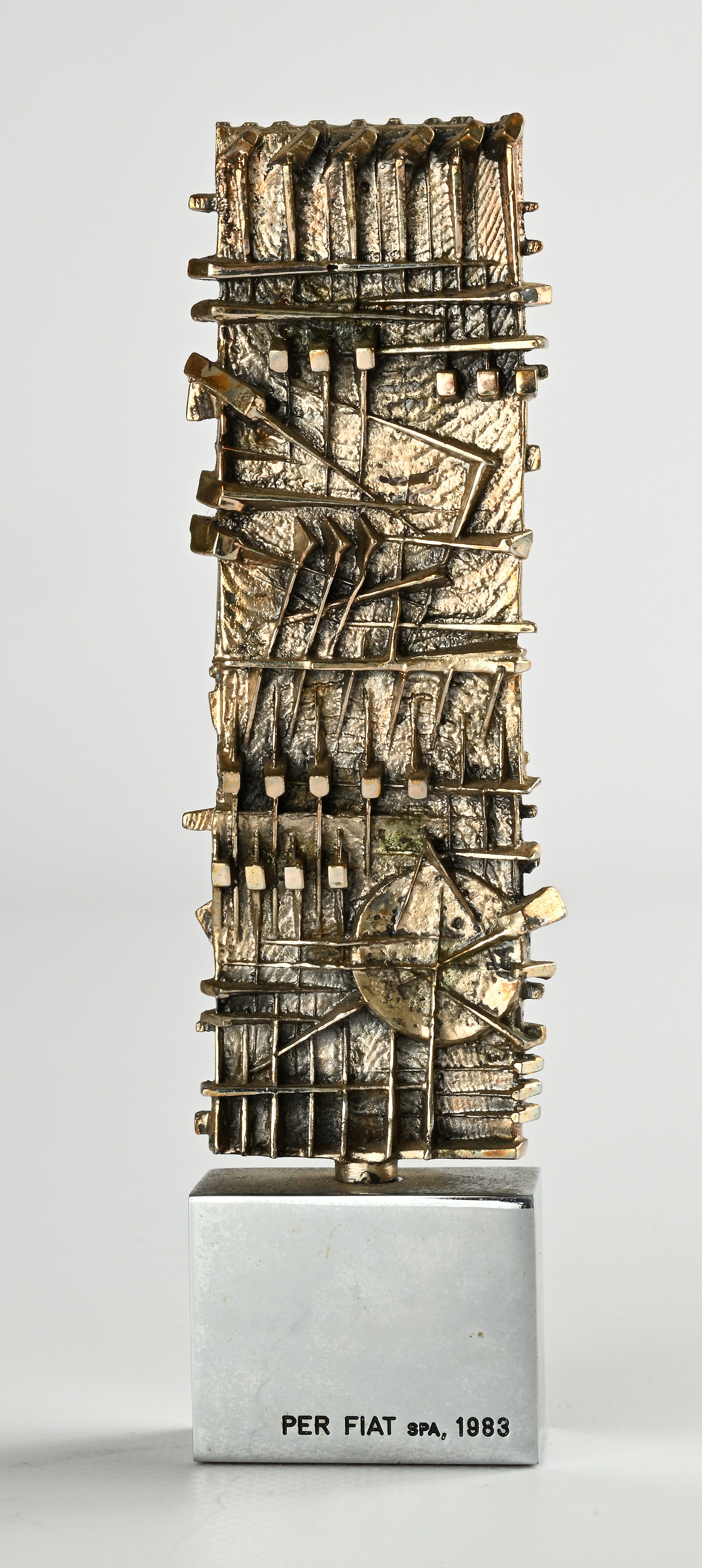 Firma, titolo e numerazione incise "Arnaldo Pomodoro, 54/200, PER FIAT spa 1983"