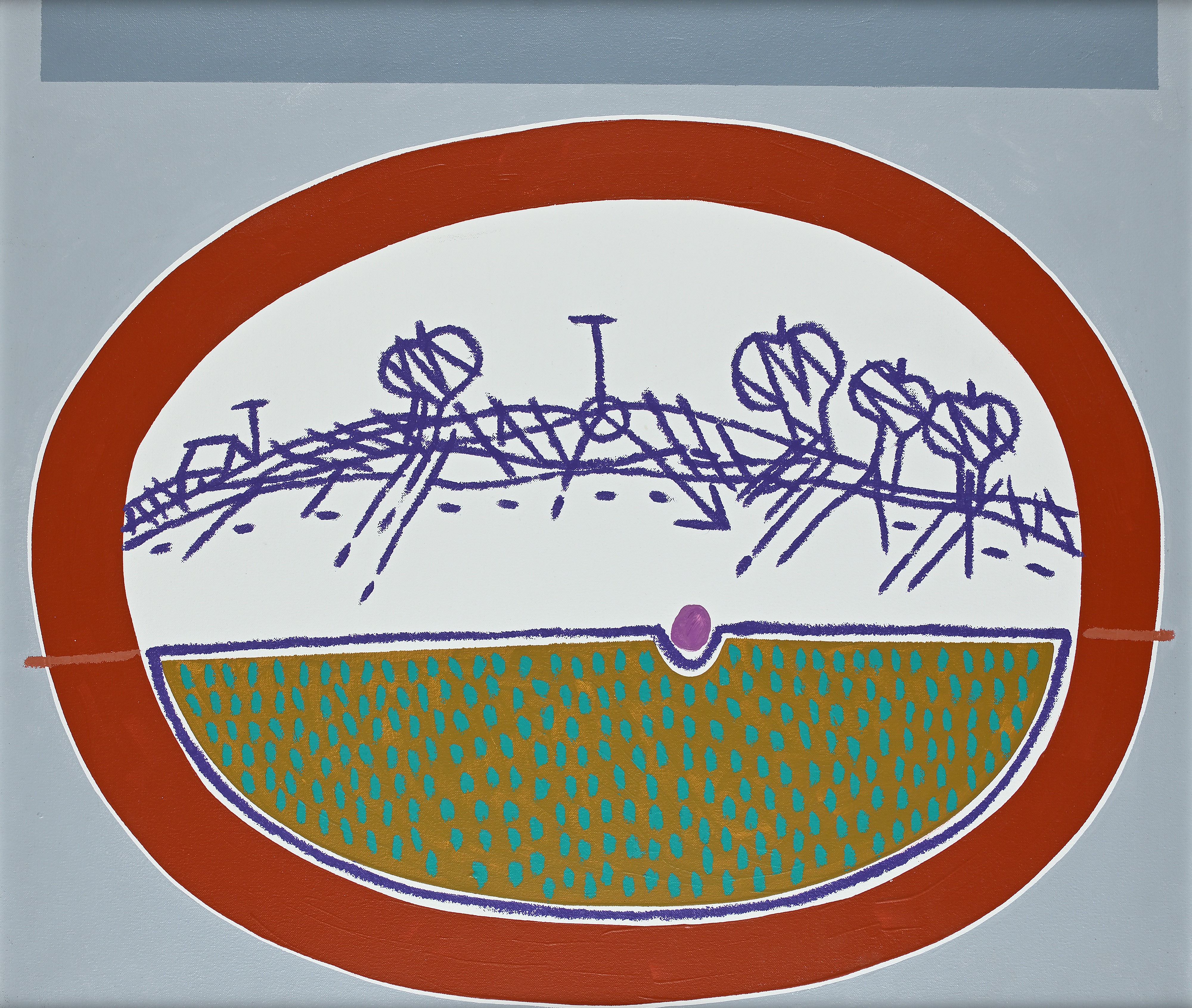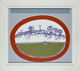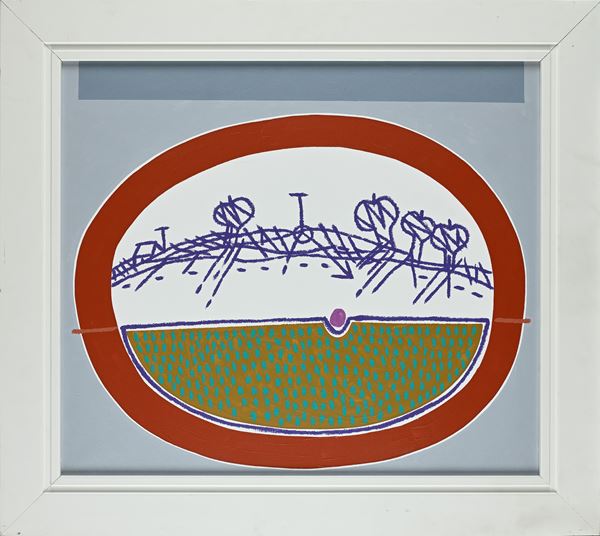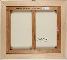 Firma e data al verso "Pozzati '95". Sul telaio al retro reca titolo