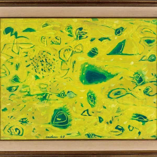 Firma e data "Sadun '69". Misure in cornice cm 65x80
