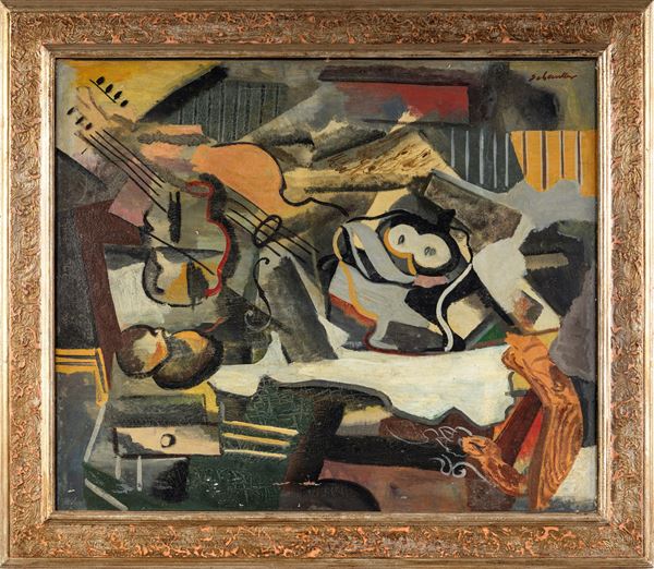 Firma in alto a destra "Schanker". Al verso etichetta parzialmente visibile "Houston Texas"