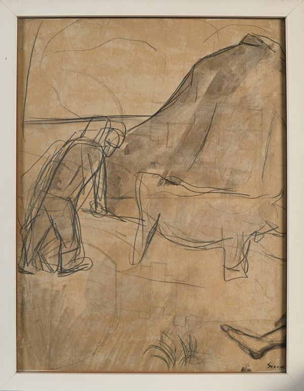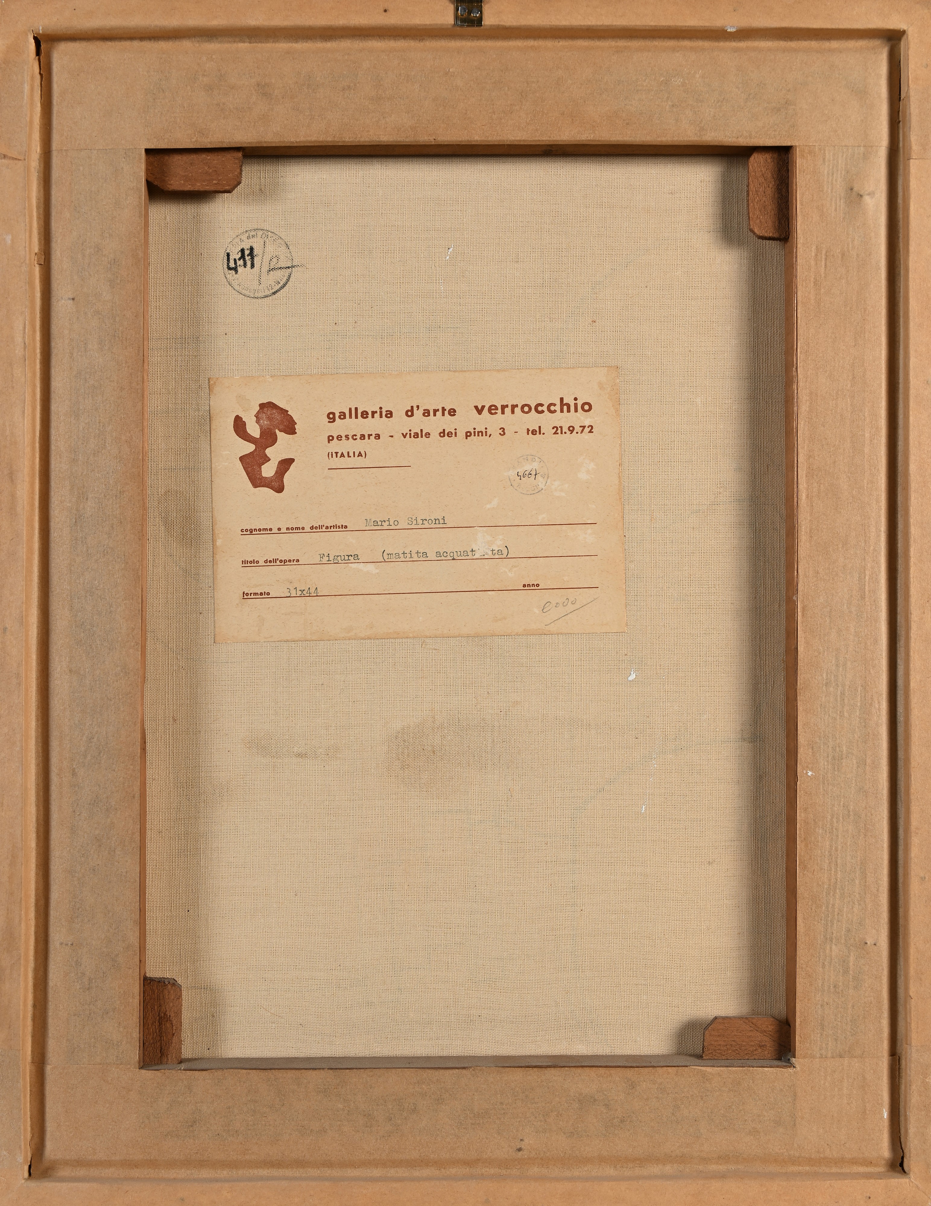 Firma in basso a destra "Sironi". Al verso reca etichetta della "Galleria Verrocchio, Pescara".