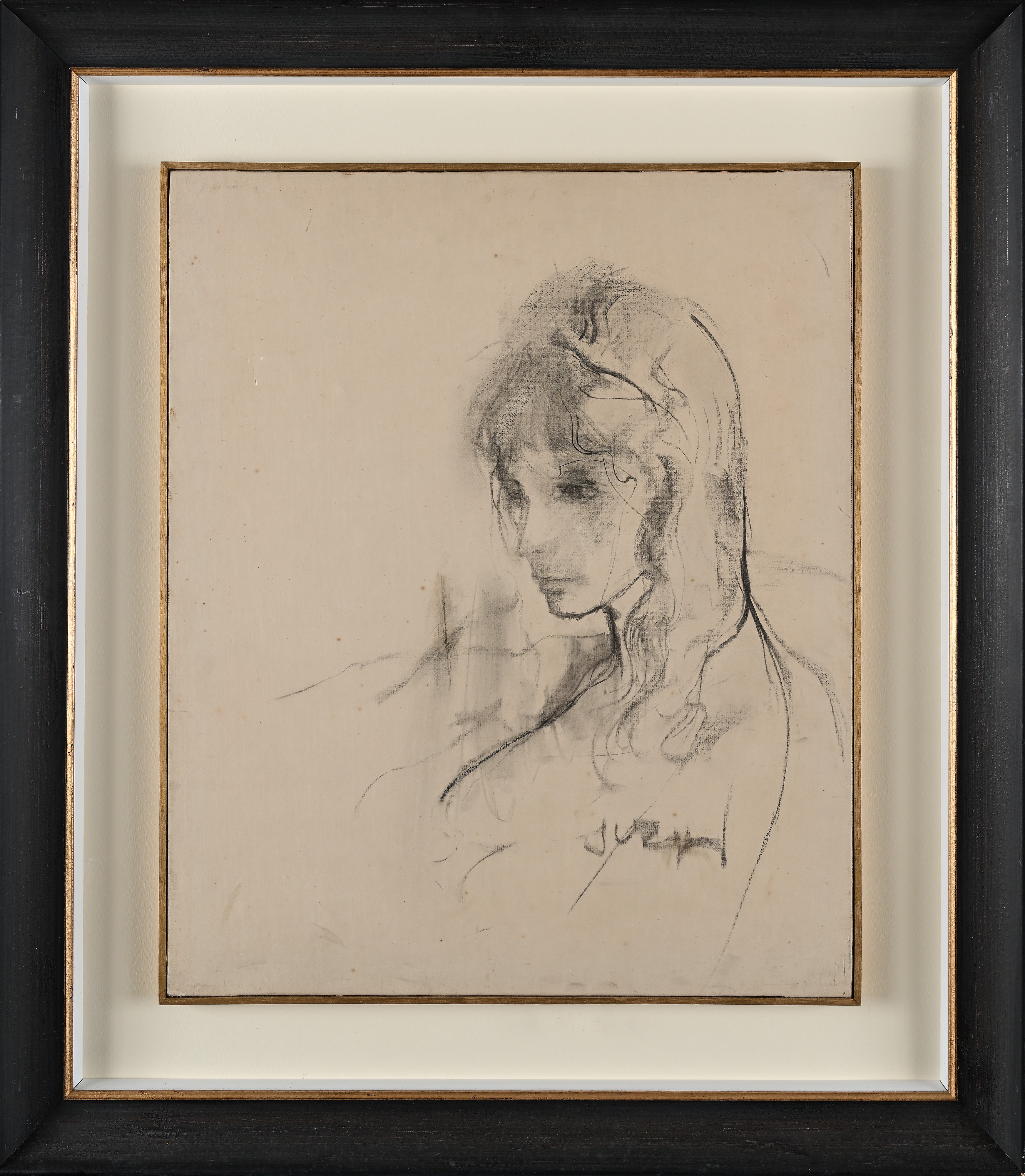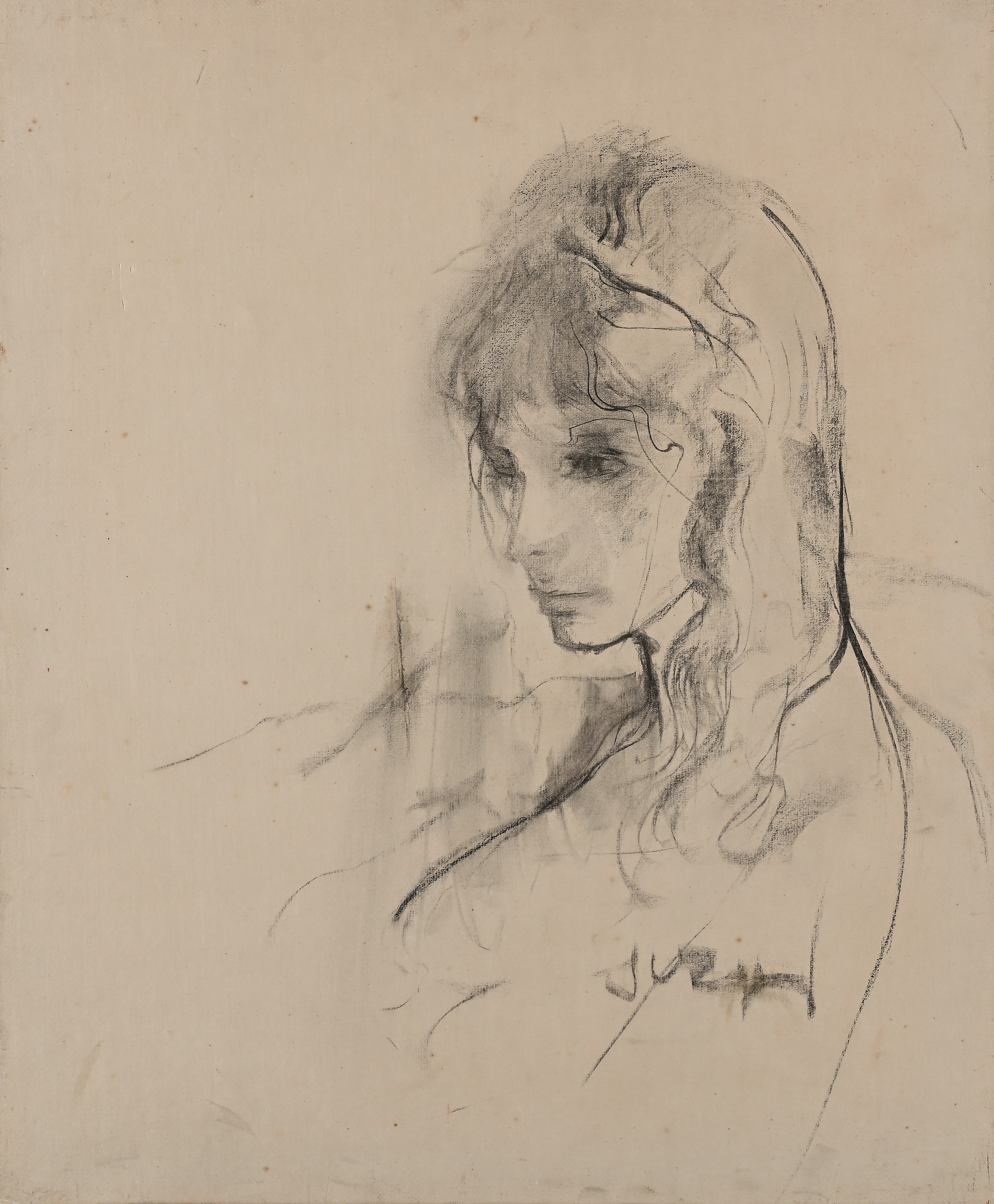 Carboncino su carta applicata su tela