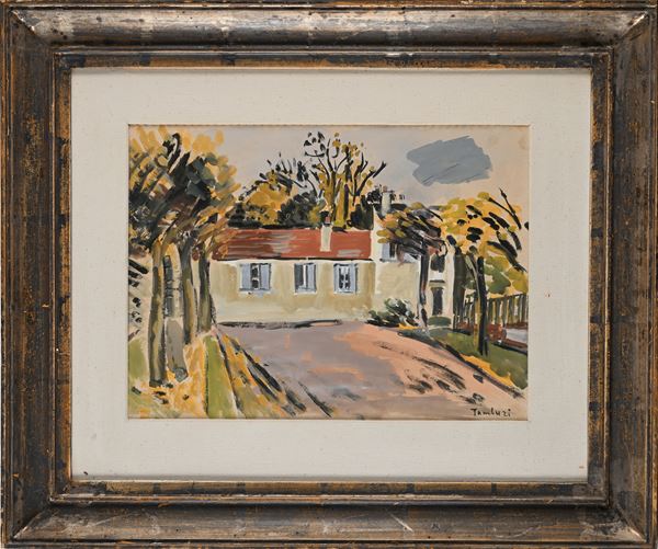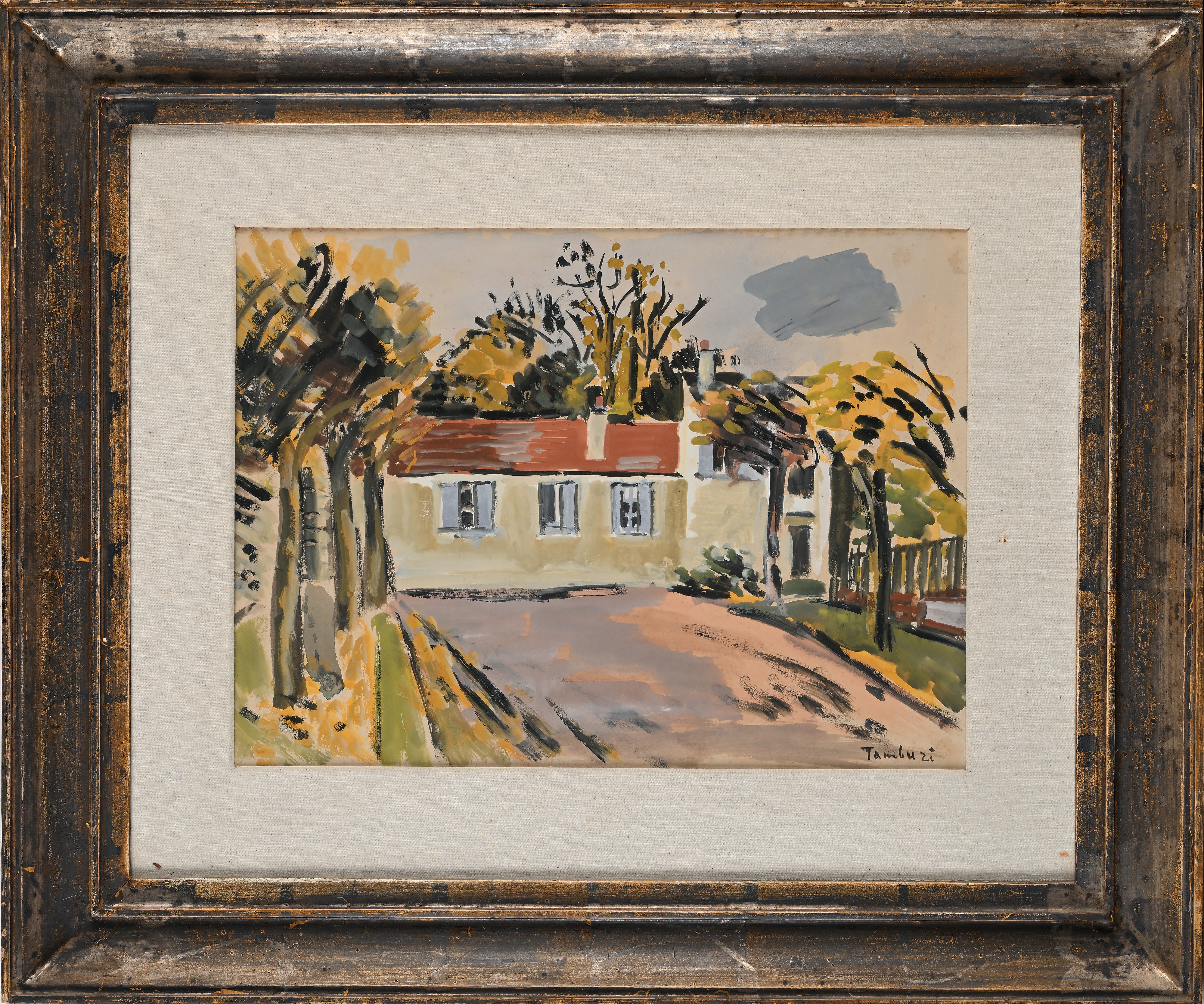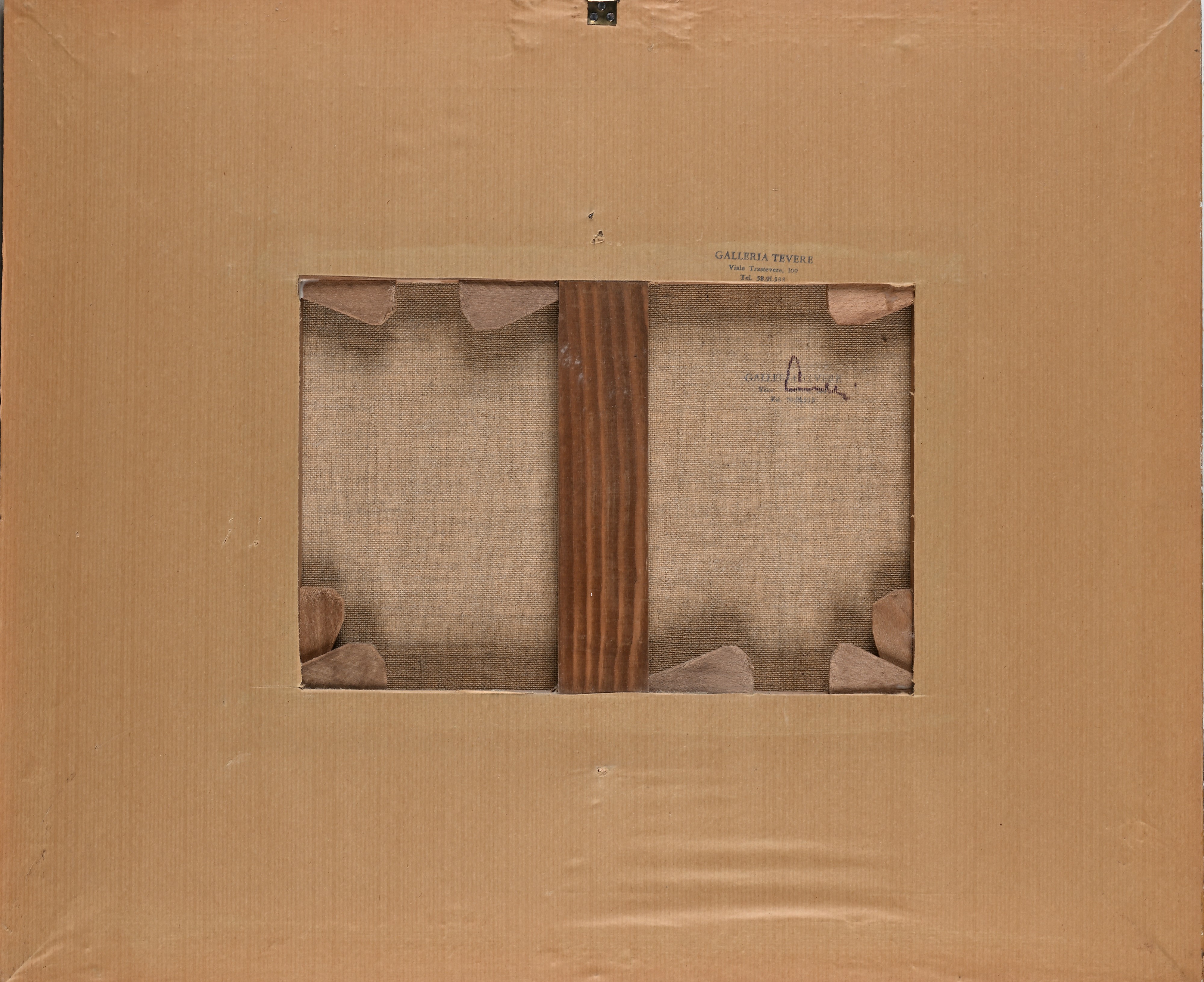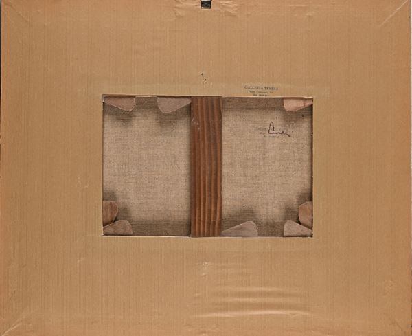 Firma in basso a destra "Tamburi". Al verso reca timbro della Galleria Tevere, Roma