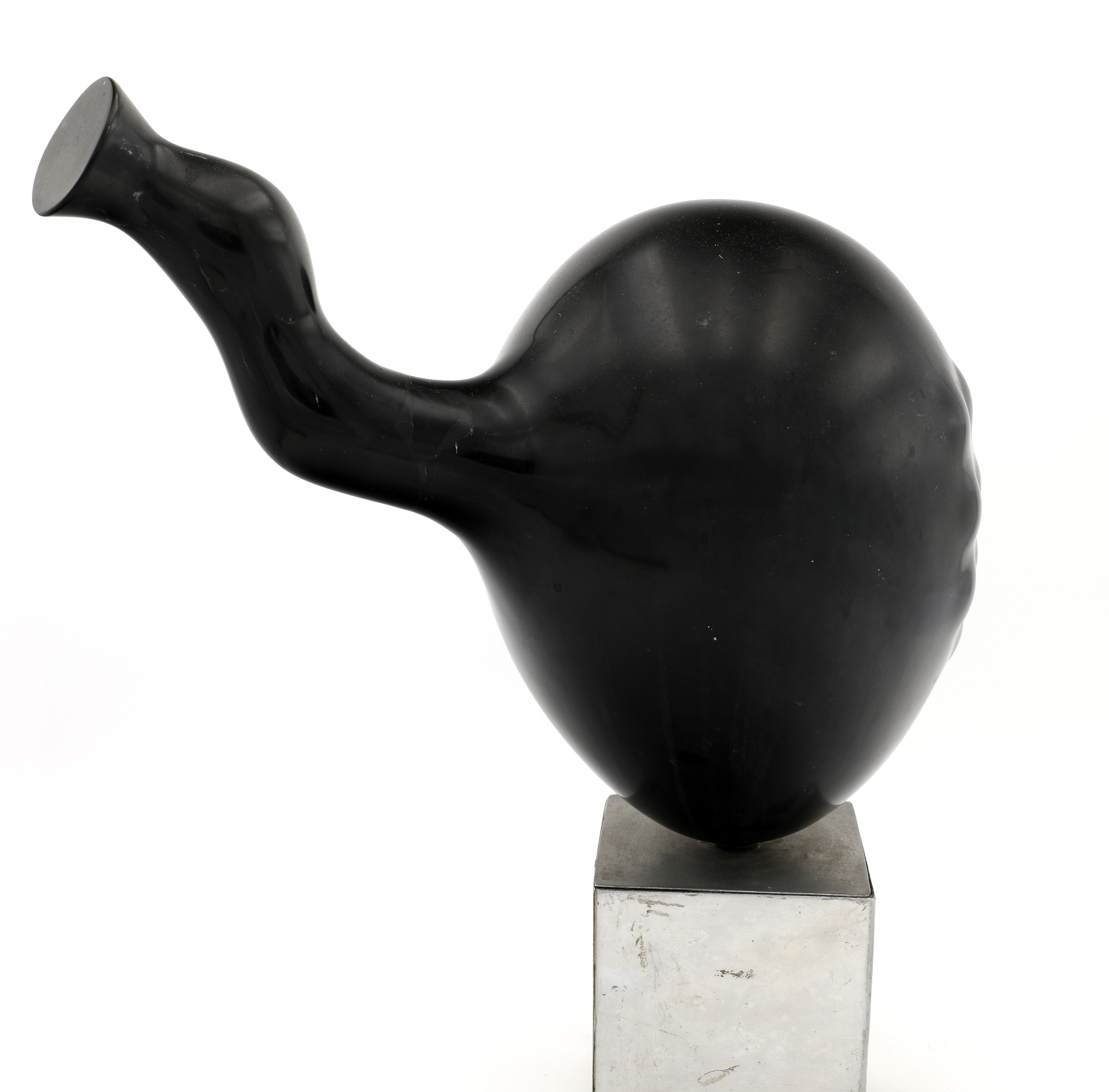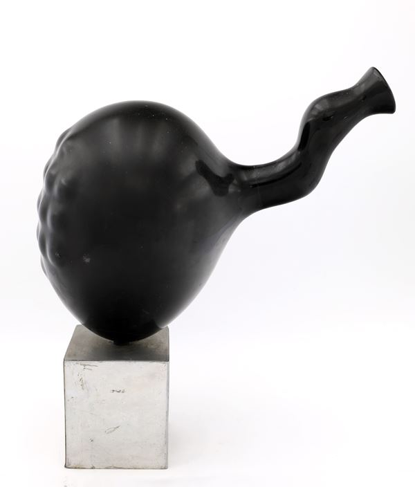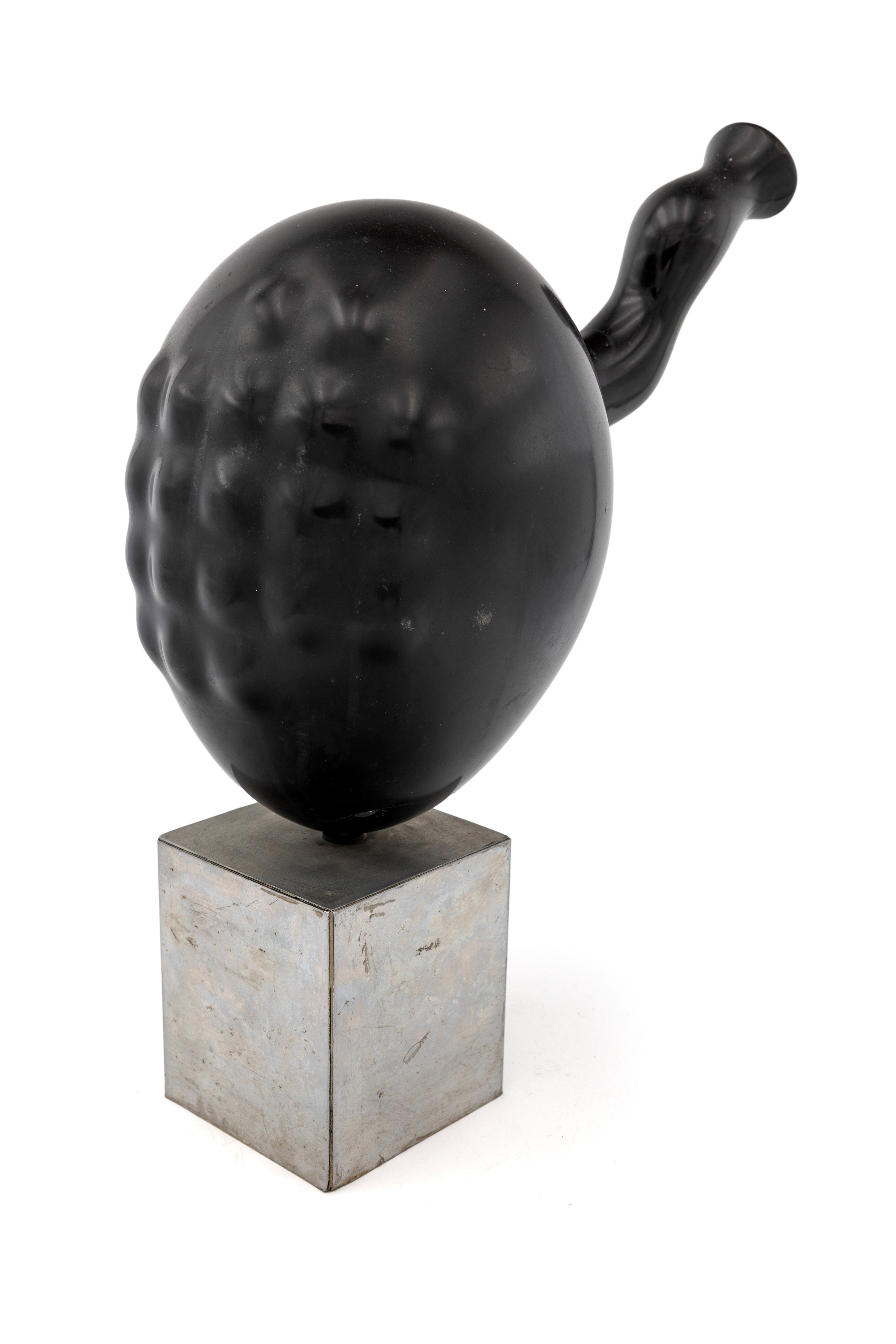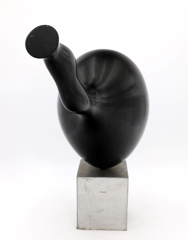 Scultura in marmo nero su base in acciaio cromato