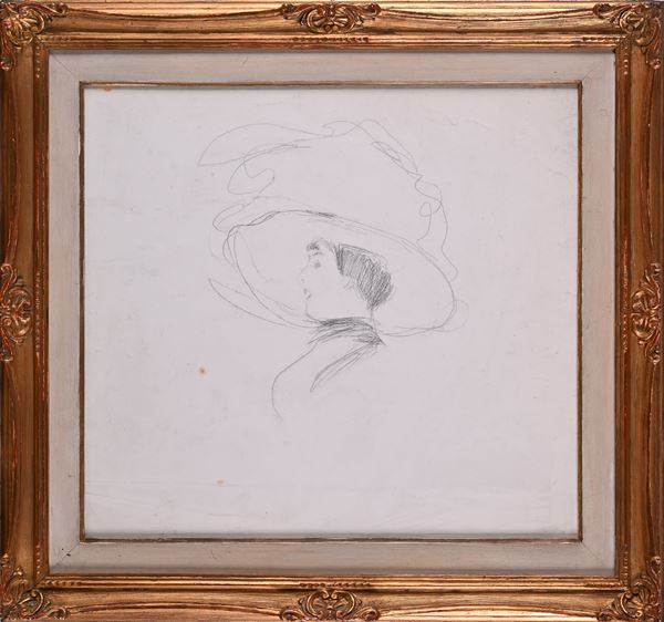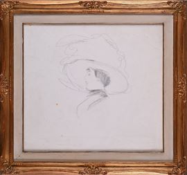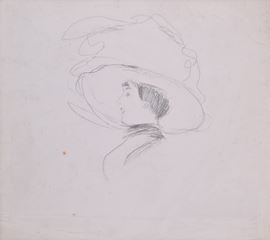 Testa di signora con grande cappello